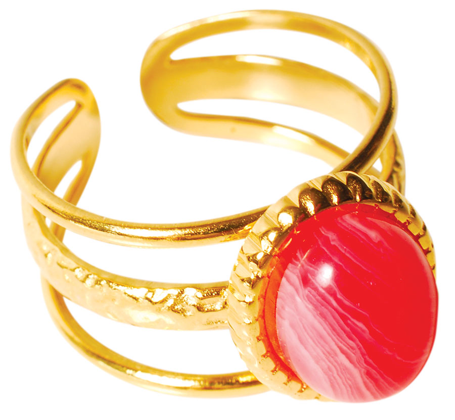 Cette bague est un bijou d’exception qui vous fera voyager dans le temps. Elle est inspirée de l’époque Romaine. Sa monture fine et travaillée en acier inoxydable dorée à l’or fin met en avant un beau cabochon corail qui se remarque au premier coup d’œil. Elle est simple et Chic. Bague ajustable.