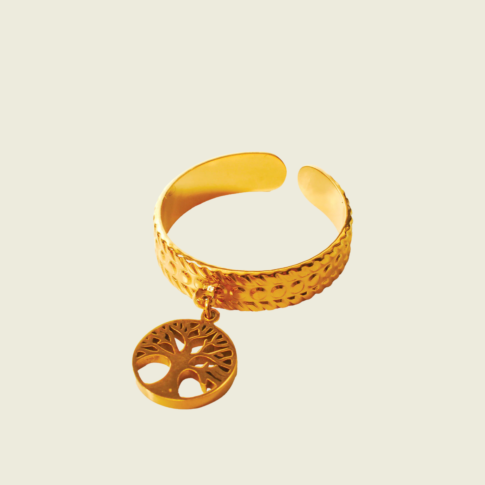 Finement ciselée, cette bague d’une grande délicatesse met l’Arbre de Vie au premier plan de votre élégance. Réglable. Médaille D. 1 cm