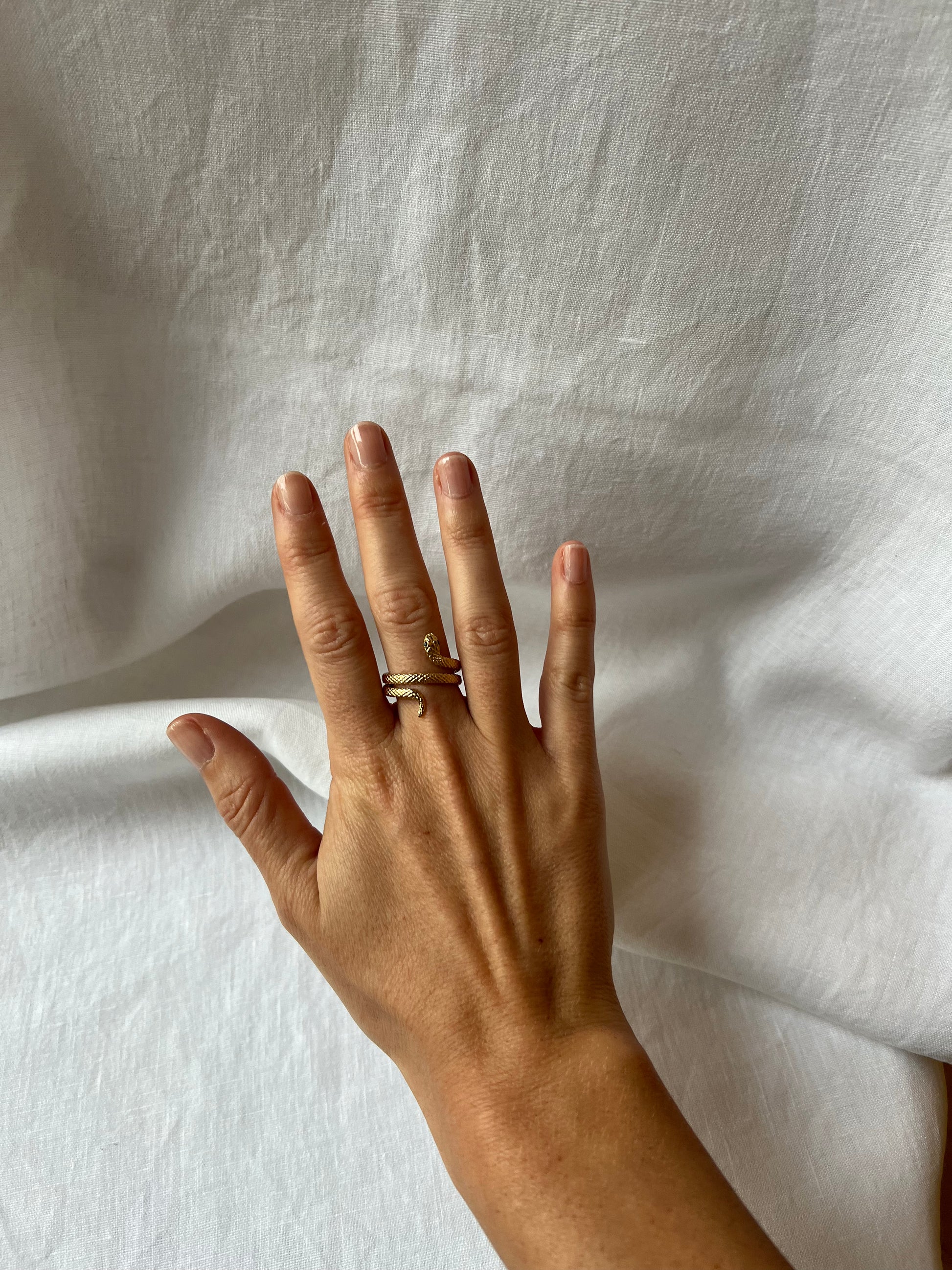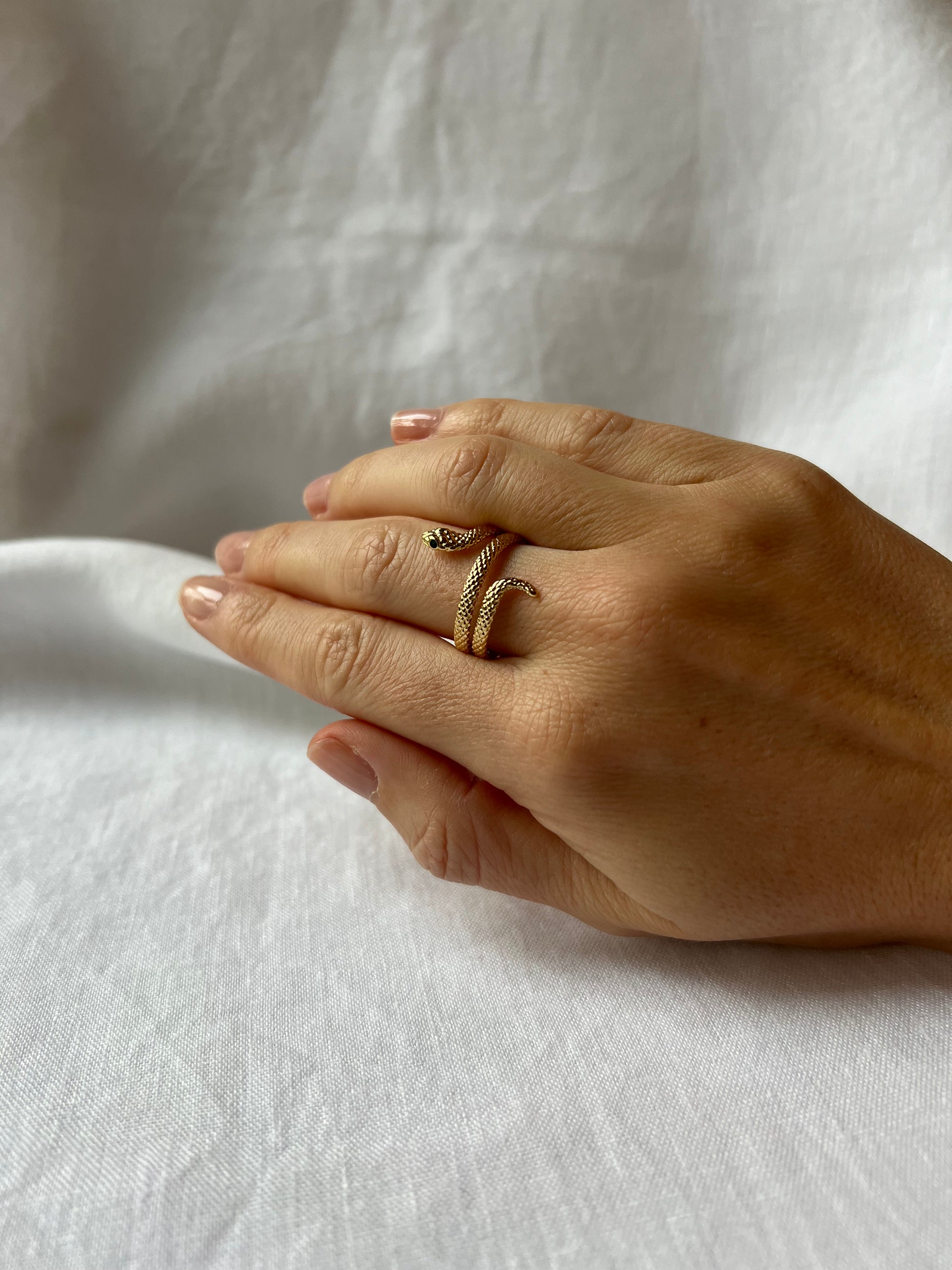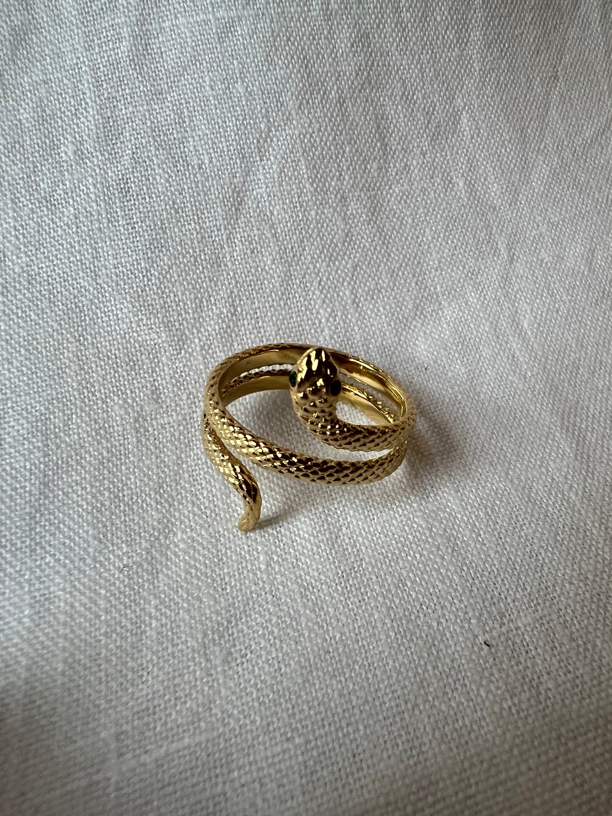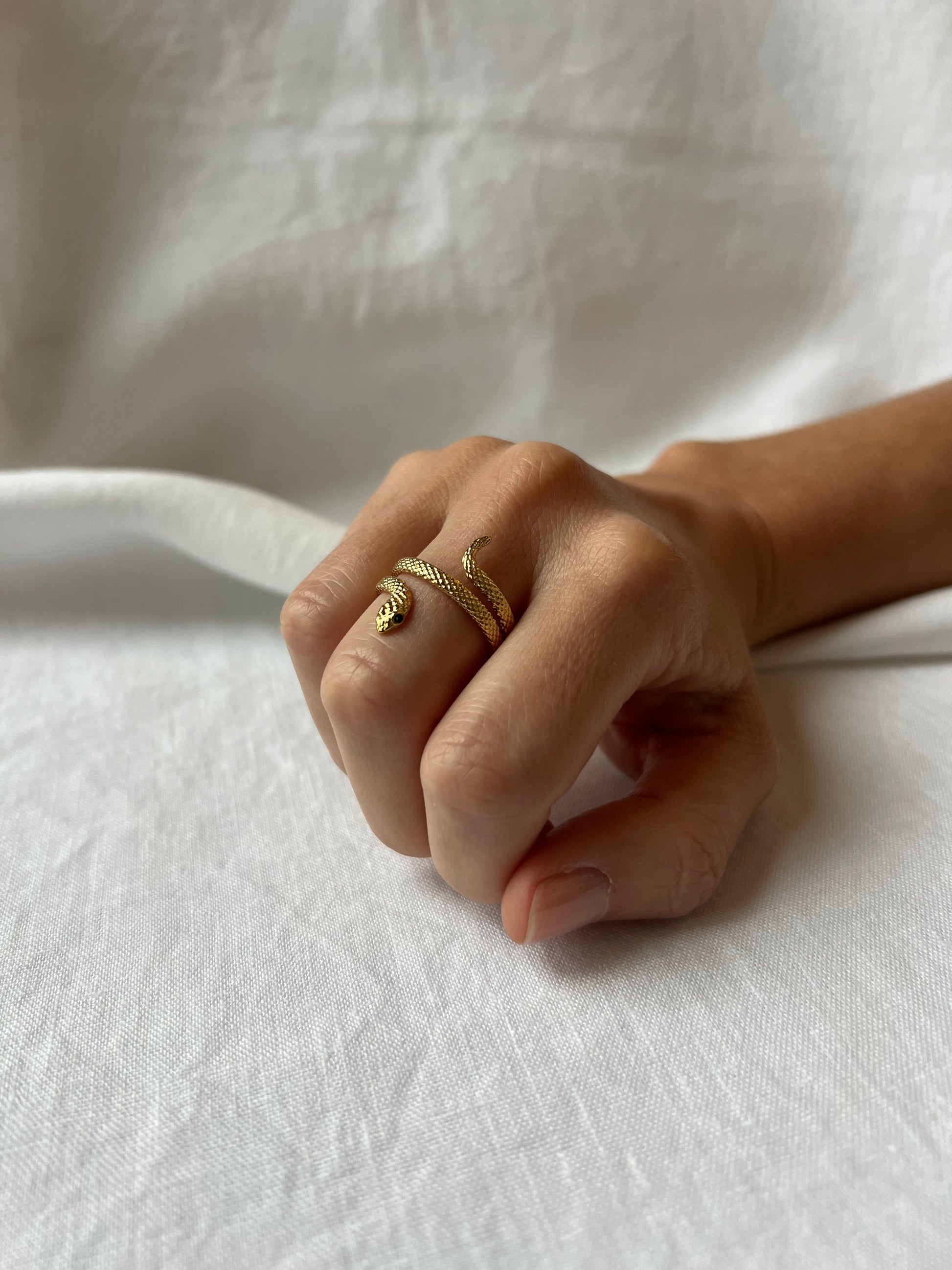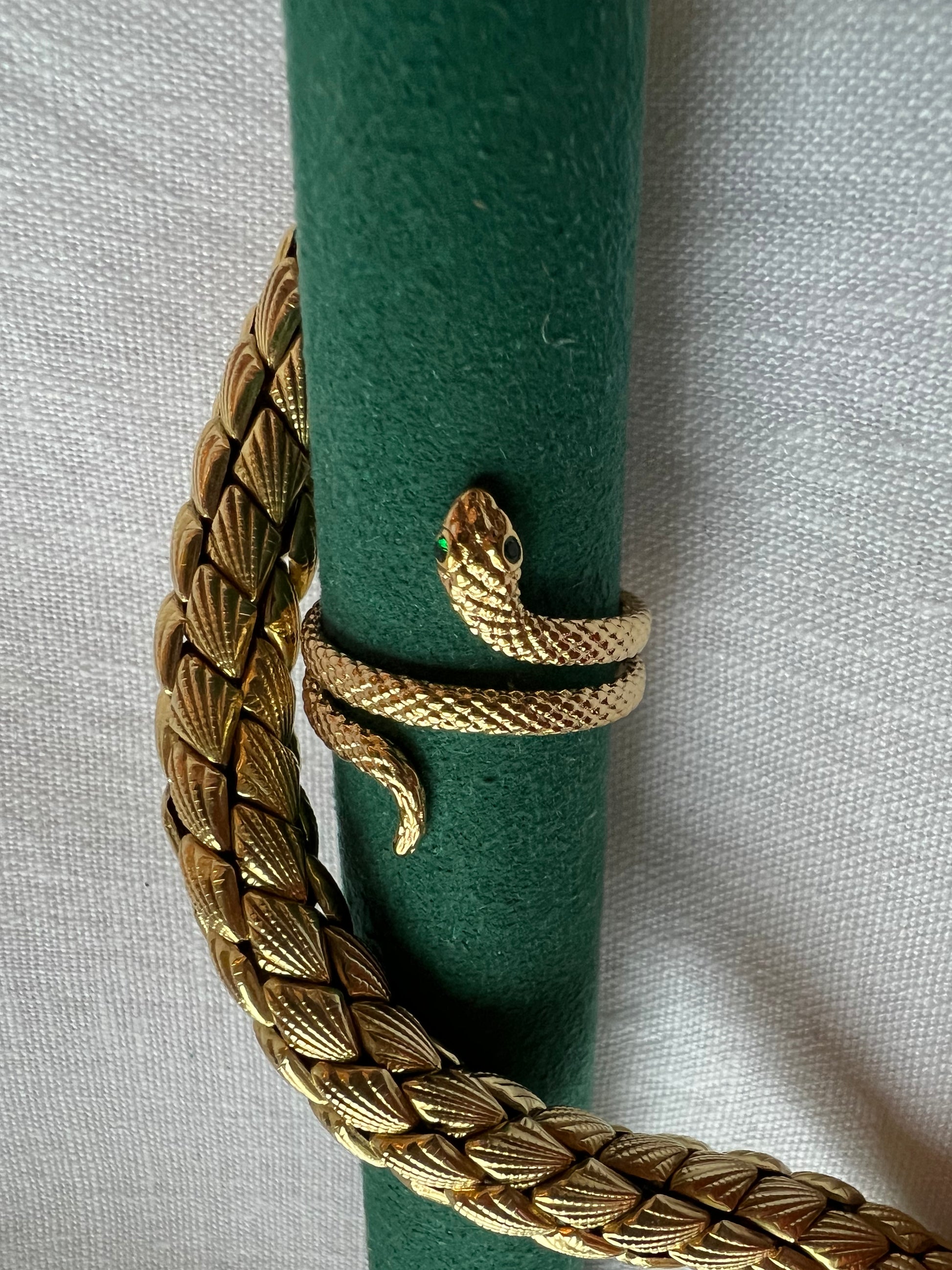 Fine création puisant sa légèreté dans ce motif déjà utilisé dans l’Egypte ancienne. Ce serpent aux yeux verts vous charmera.