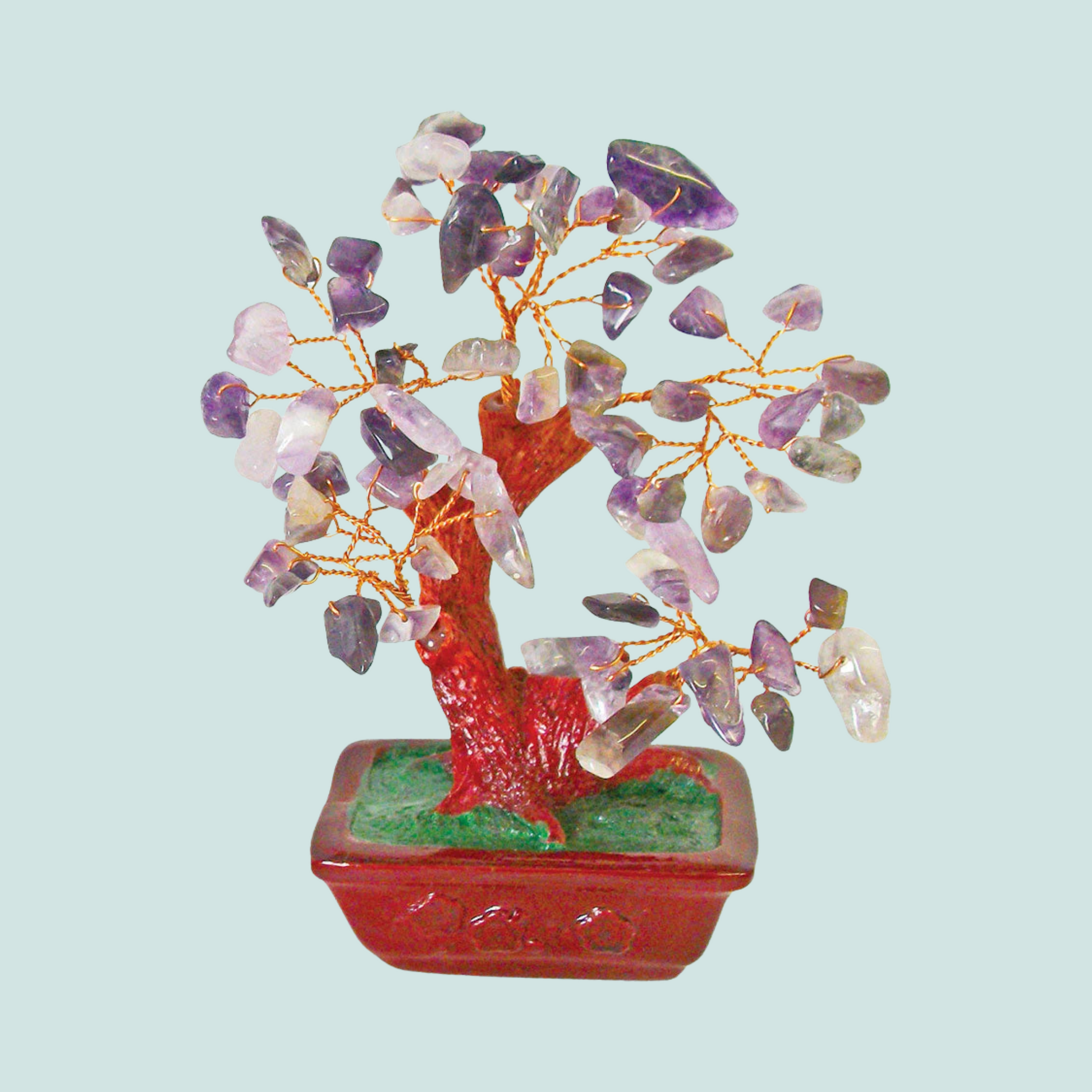 L’art du Bonzaï, une tradition qui remonte en Chine à la dynastie des Han (206 av. J.-C.-220), Un petit bonzaï contemplatif et décoratif très Zen. Pierres minérales taillées et polies artisanalement. H. 13 cm.