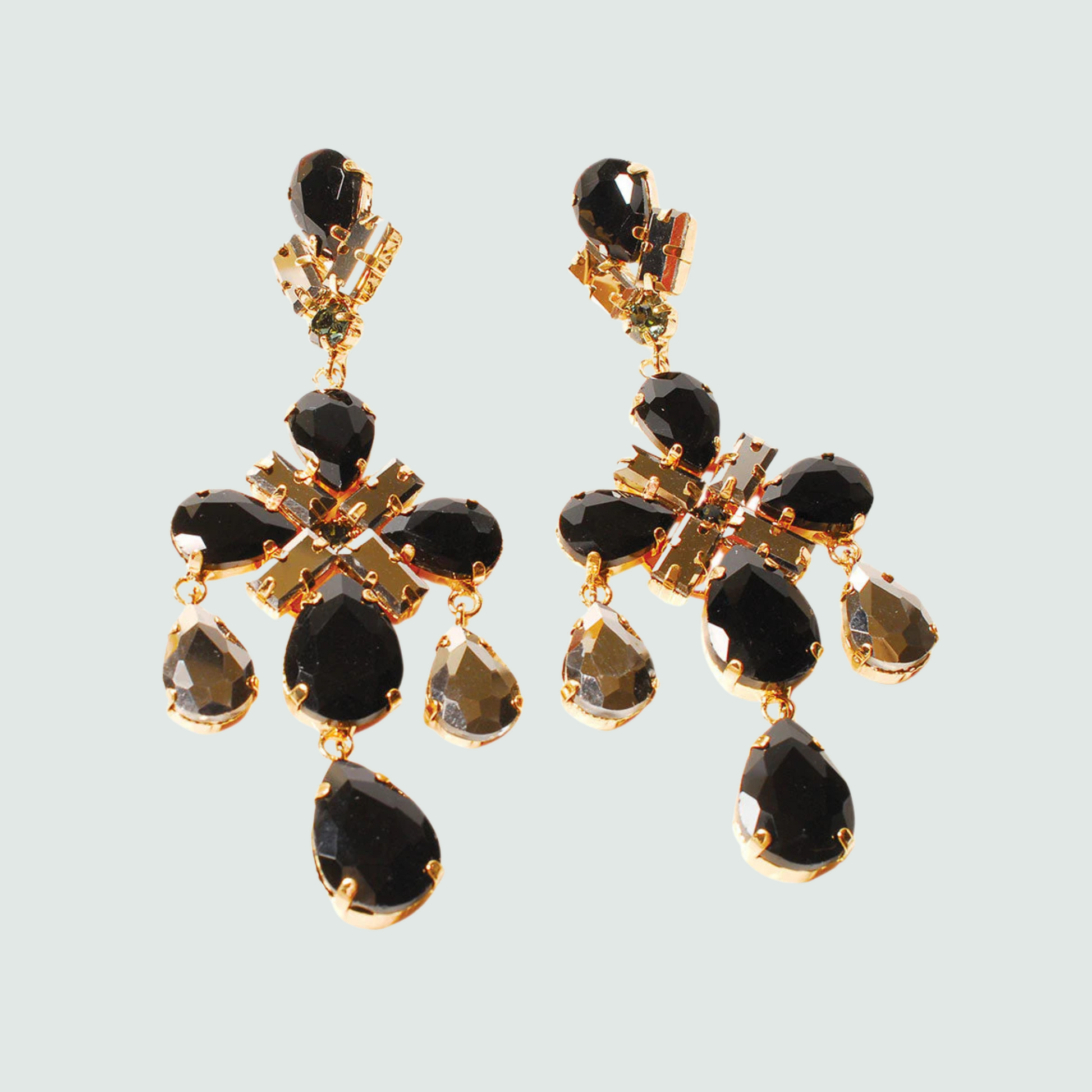 Splendides boucles d’oreilles de cristal facetté dans la tradition des somptueux bijoux portés par Sissi en 1815 pour le Bal de L’Empereur à Vienne où les toilettes rivalisaient d’élégance comme c’est le cas encore aujourd’hui. Oreilles percées – L. 9,5 cm