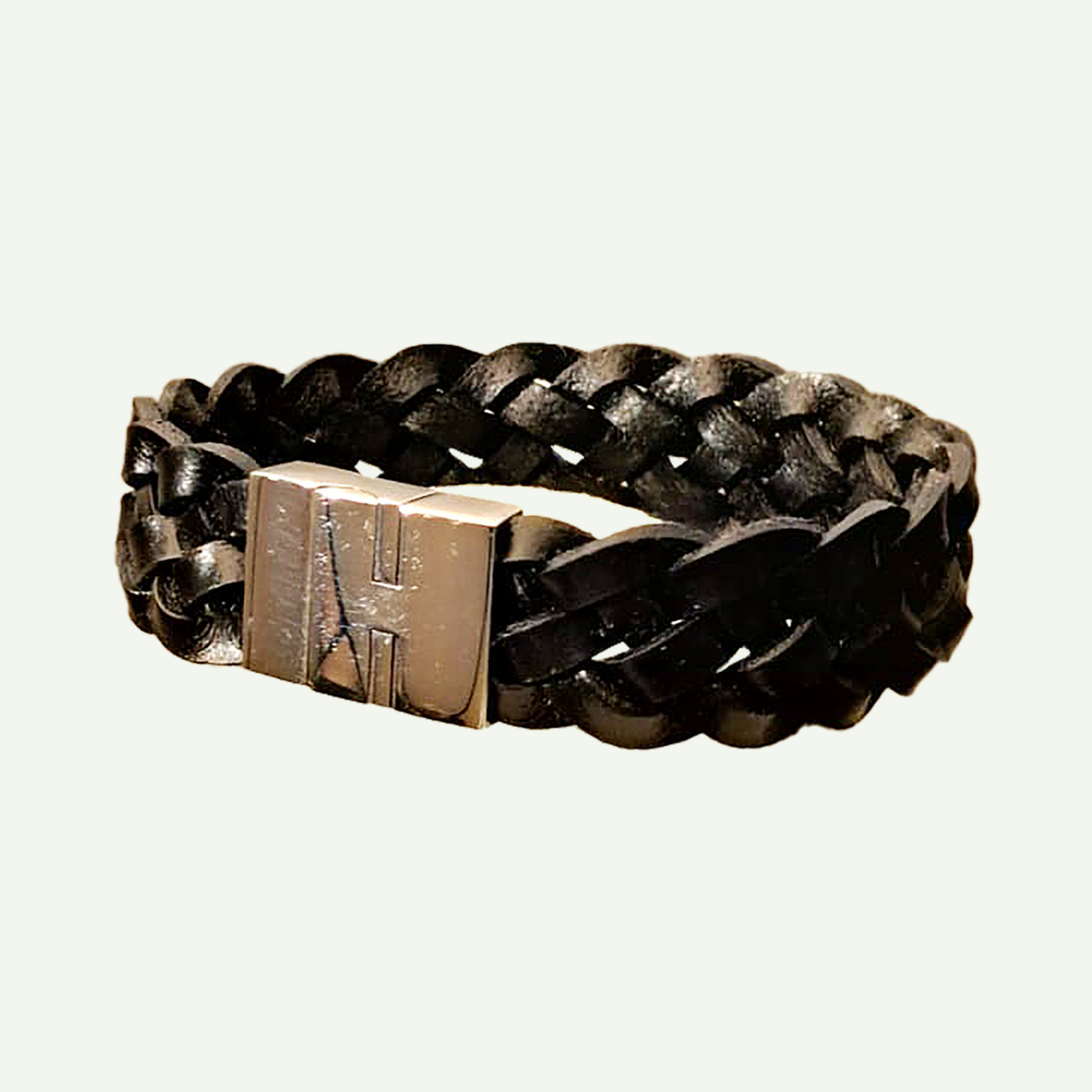 | Splendide cuir tressé pour poignet masculin élégant. Il s'enfile aisément a l'aide de son fermoir aimant. Longueur 20 cm x 2 cm |