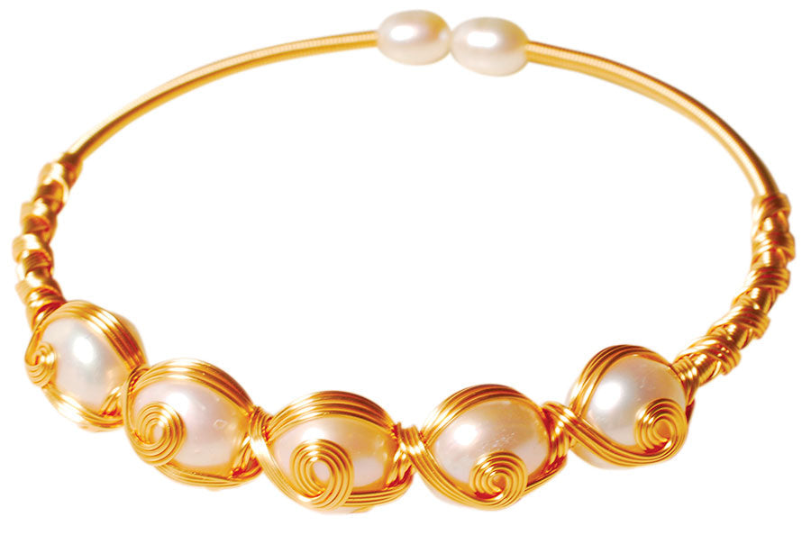 Un bijou léger et merveilleux fabriqué avec amour en hommage à Joséphine de Beauharnais par un artisan orfèvre de grande classe. Née à la Martinique, Joséphine avait gardé de son île natale son amour pour les perles qu’elle affectionnait tout particulièrement. Beauté et savoir-faire du fil doré or fin façon lien délicat et perles de culture. S’adapte à tous les poignets. 6 cm