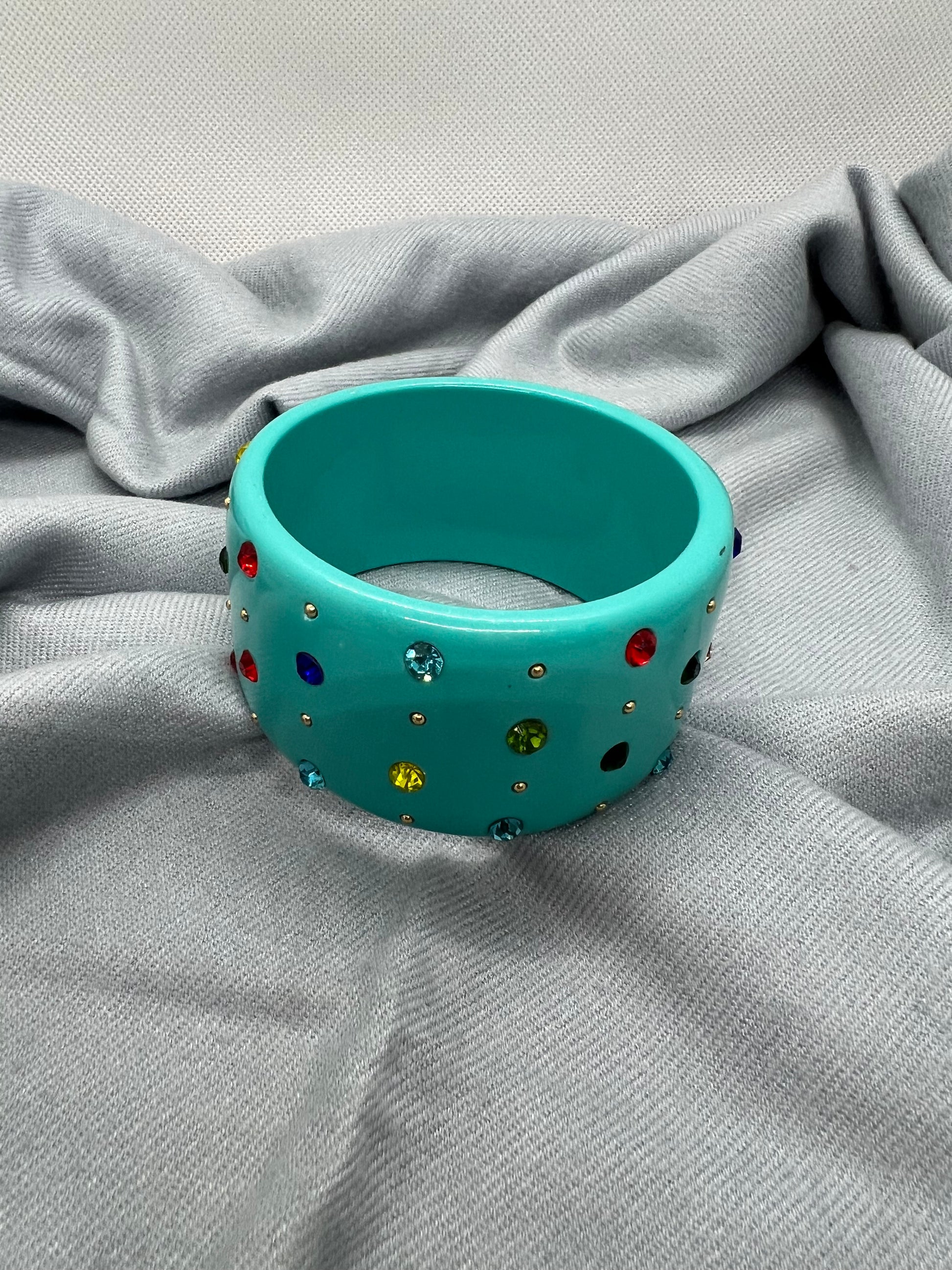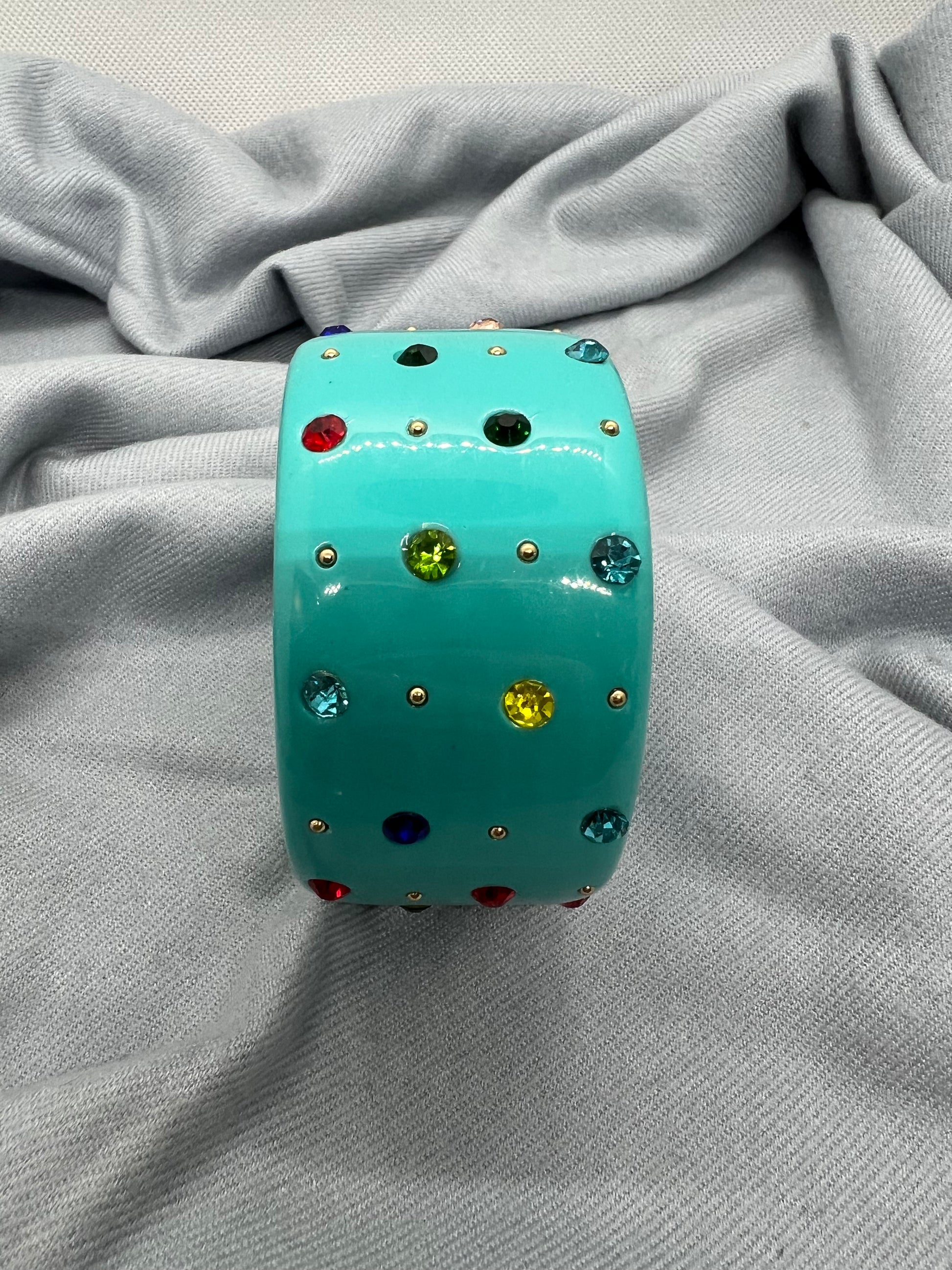 Beau bracelet qui brille de tous les feux de ses strass colorés. Taille unique. Hauteur 4 cm
