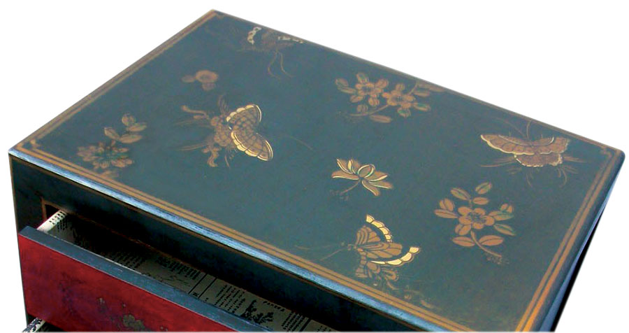 Délicatesse des motifs peints à la main reflétant le charme et l’authenticité d’autrefois. Structure bois massif de bouleau, médium. Livré avec verre biseauté de protection sur toute la surface du dessus. Fabrication artisanale. Décoration traditionnelle réalisée à la main sur cuir tendu sur bois. 60 x 32 x 43 cm. (IMPORTANT, n'oubliez pas d'indiquer " Sous réserve de déballage" lors de la livraison)