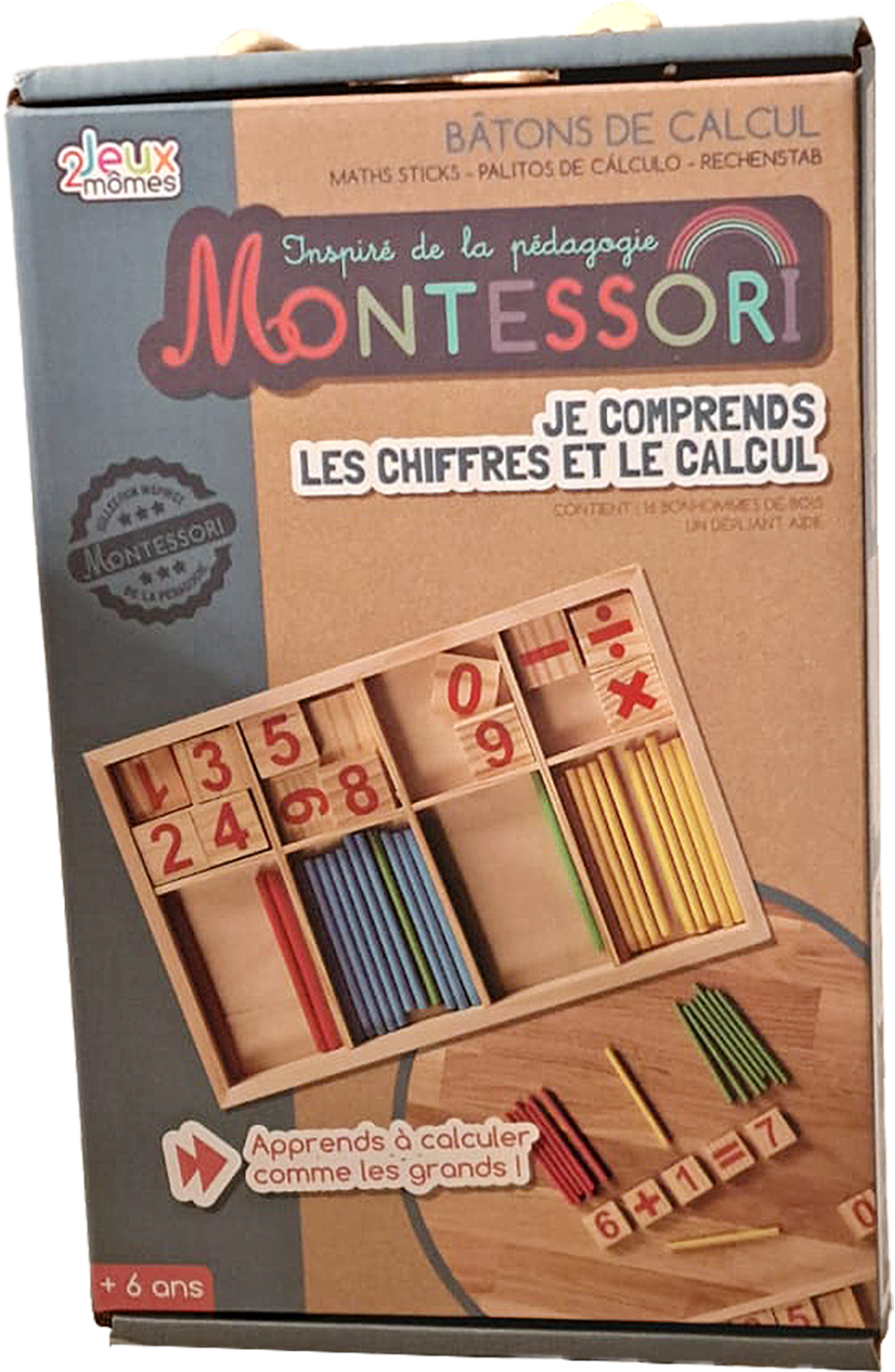 | Pour familiariser les enfants avec les chiffres et les nombres, c'est le coffret qu'il faut, inspiré de la méthode Montessori. Parfait ppprendre les mathématiques en s'amusant : bâtons de calcul, pions avec chiffres et signes pour les opérations. A partir de 6 ans. Boîte 22 x 14 cm |