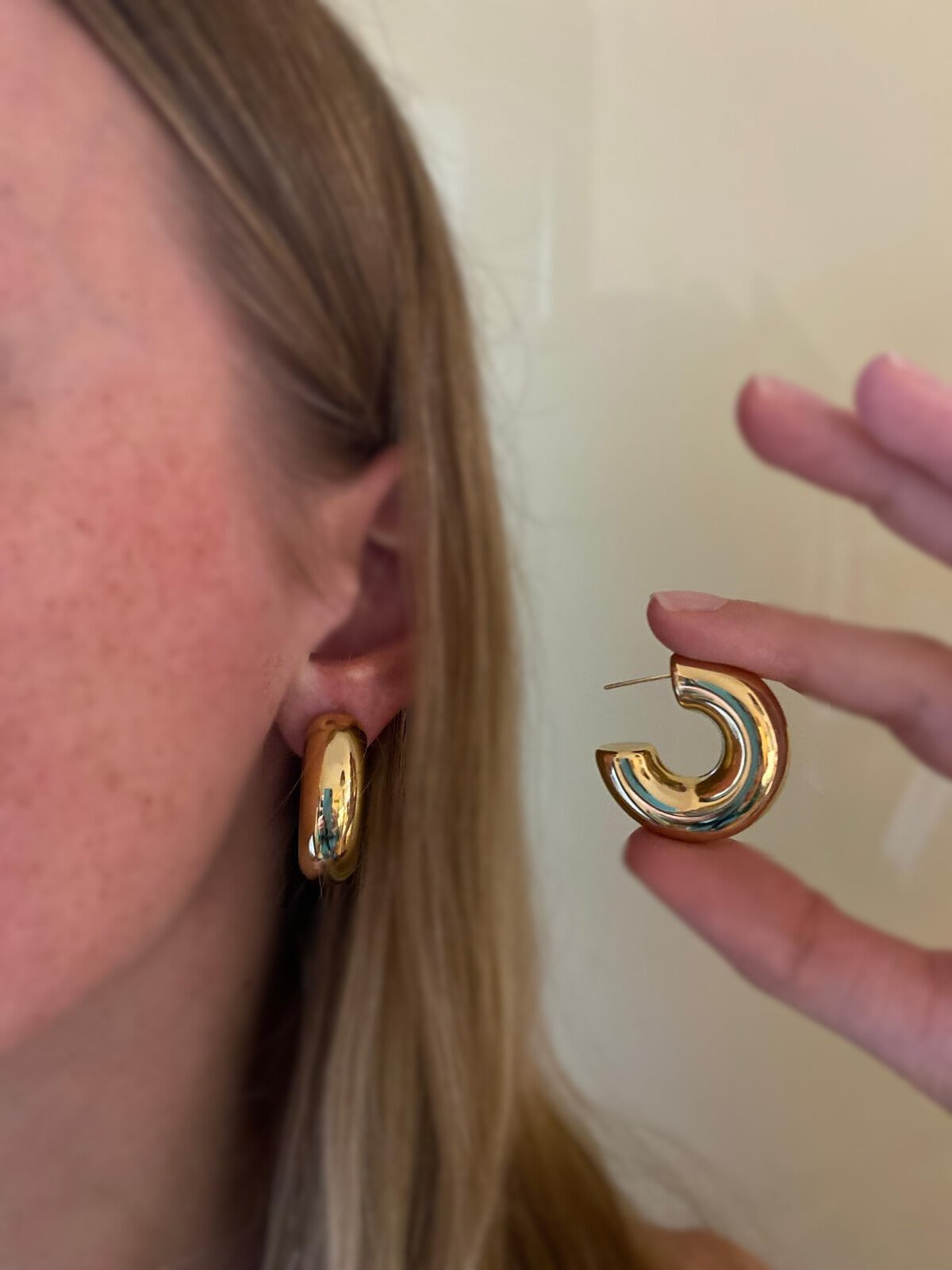 Imposantes avec leur belle courbure, elles sont creuses et légères et mettront en valeur votre visage. Acier inoxydable doré or fin – H. 4 cm