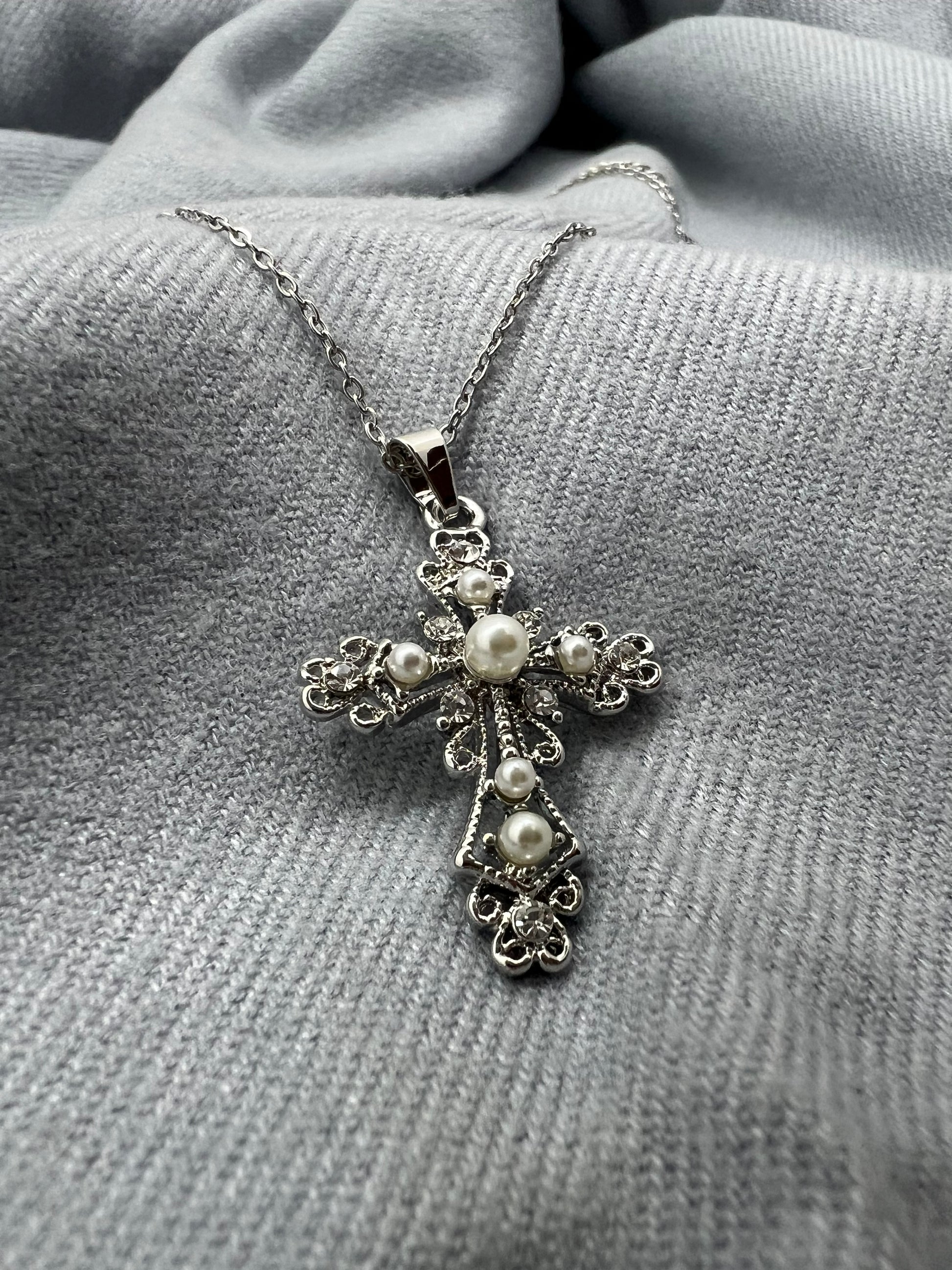 Plongez dans l’univers raffiné de l’art baroque avec cette magnifique croix en acier doré à l’or fin, sublimée par l’éclat délicat des perles incrustées. Véritable chef-d’œuvre de l’artisanat, cette croix réinterprète avec élégance les codes du baroque, une époque marquée par l’exubérance et le raffinement. Chaque détail de cette pièce est pensé pour capturer l’essence de la période baroque, où l’ornementation riche et les formes expressives étaient à l’honneur. Le métal, recouvert d’une fine couche d’or, confère à la croix un éclat noble et précieux.