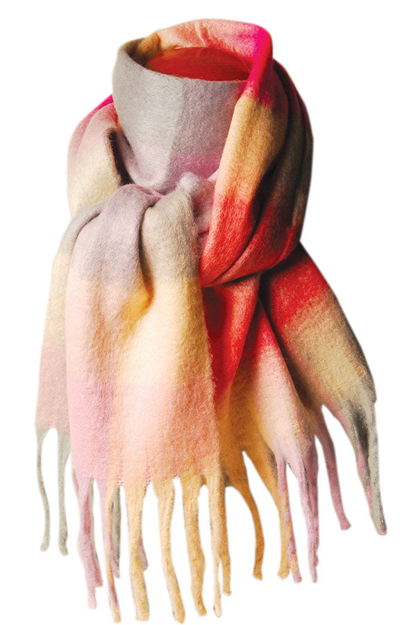 Une écharpe très douce et chaude à la fois… Un vrai bonheur de confort pour se protéger des vents les plus frais. 50 % laine, 50 % viscose. 80 x 22 cm + franges
