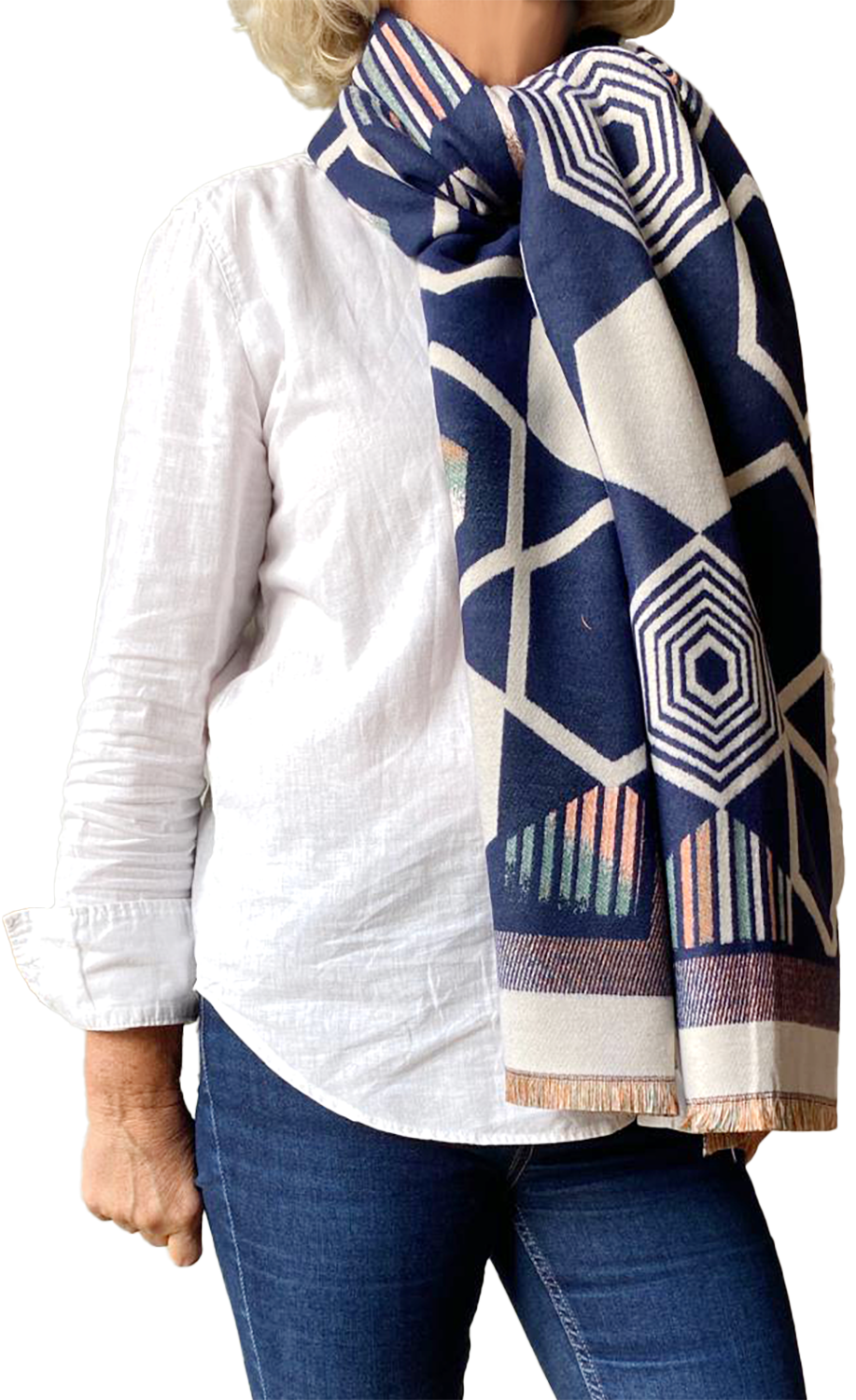 Inspirée des Œuvres de Vasarely, fondateur du OP ART ou Art Optique, cette magnifique étole créée par une artiste de talent affirmera votre style en toute élégance. Etole très douce et au tissage serré. 70 % viscose, 30 % Laine - 85 x 195 cm