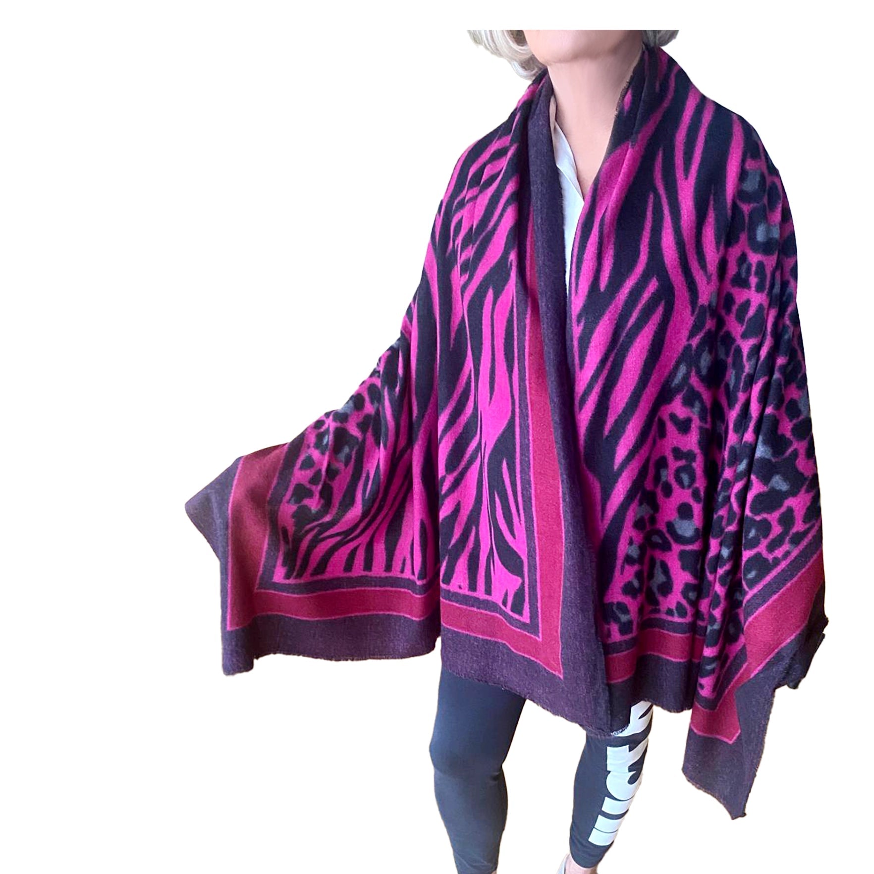 Aujourd'hui, le safari est aussi une expérience de conservation, visant à protéger les espèces menacées. De plus en plus de safaris sont axés sur l'écotourisme, encourageant une approche durable. L'excitation d'observer la faune sauvage dans des paysages magnifiques reste l'essence de cette aventure unique .Découvrez notre magnifique châle, subtilement orné d'imprimés léopard et de zébrures ton sur ton. Un accessoire indispensable qui allie chaleur et style ! Son design inspiré de la nature sauvage apportera une touche exotique à vos tenues. Un mélange unique d'élégance et d'extravagance pour affirmer votre personnalité. 190 x 90 cm. 70 % laine, 30 % cachemire. Commandez dès maintenant, et laissez la bête en vous rugir de plaisir !