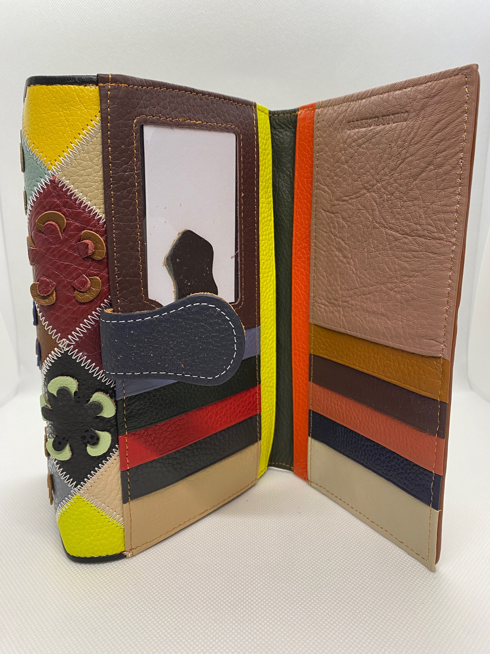Un véritable accessoire de mode en cuir, très chic. Distingué, il fait la différence. Bien conçu avec ses 3 parties et ses nombreuses options il est pratique et sera vite indispensable. Réalisé artisanalement en Italie par des maîtres façonniers, un produit d'exception ! Fermé des 2 côtés par de bons boutons pressions, il s'ouvre sur 6 cartes d'un côté et 6 de l'autre, avec poches pour insérer vos papiers au-dessous. Au centre, porte-monnaie triple pour vos billets, vos papiers et avec fermeture zippée pour votre monnaie. Et vous découvrirez en plus 10 poches doubles ou simples, astucieusement réparties. Cuir vachette, doublé textile. Un vrai compagnon fidèle et indispensable qui ne laissera pas indifférent !