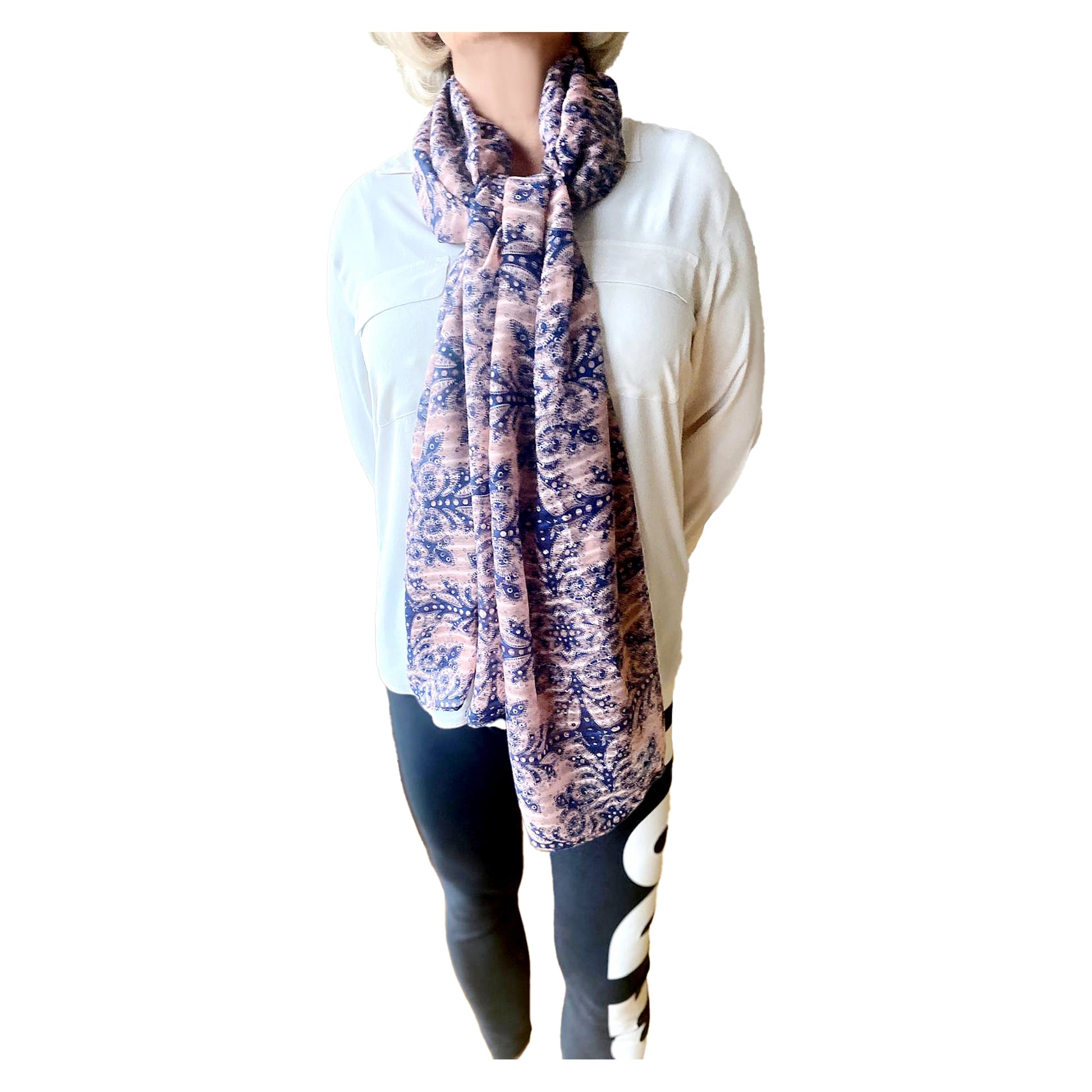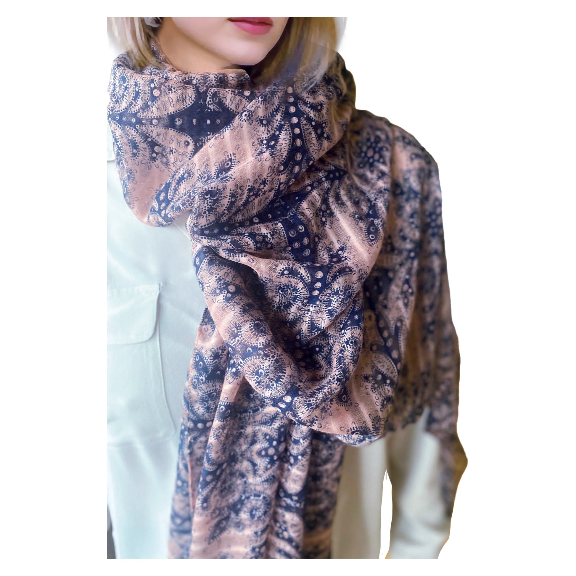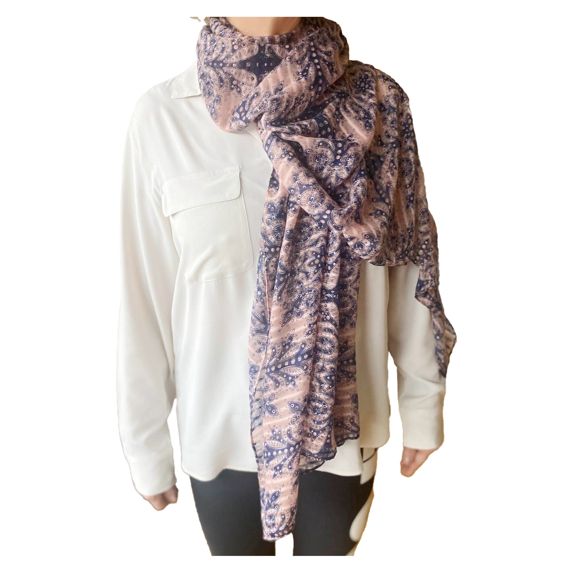 Découvrez notre grande étole légère aux délicats motifs bleus traditionnels Tibétains sur fond mauve. Une pièce chic et exotique qui apportera une touche d'élégance à vos tenues. Son tissu doux et léger est parfait pour vous accompagner lors des soirées fraîches d'été. Portez un bout du Tibet avec vous et plongez dans son histoire riche en couleurs. 100 % viscose - 80 x 180 cm. Commandez dès maintenant et faites de cette étole l'accessoire phare de votre garde-robe !