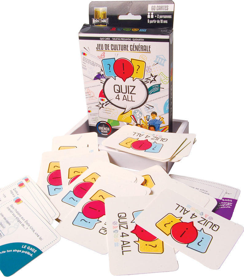 Ce jeu est un quiz pour toute la famille - Jeu de Culture Générale. Apprenez en vous amusant grâce à plus de 60 questions. Un jeu parfait pour passer des moments inoubliables en famille ! règles fournies à l'intérieur du pack. Ne convient pas aux enfants de moins de 36 mois. A partir de 6 ans.