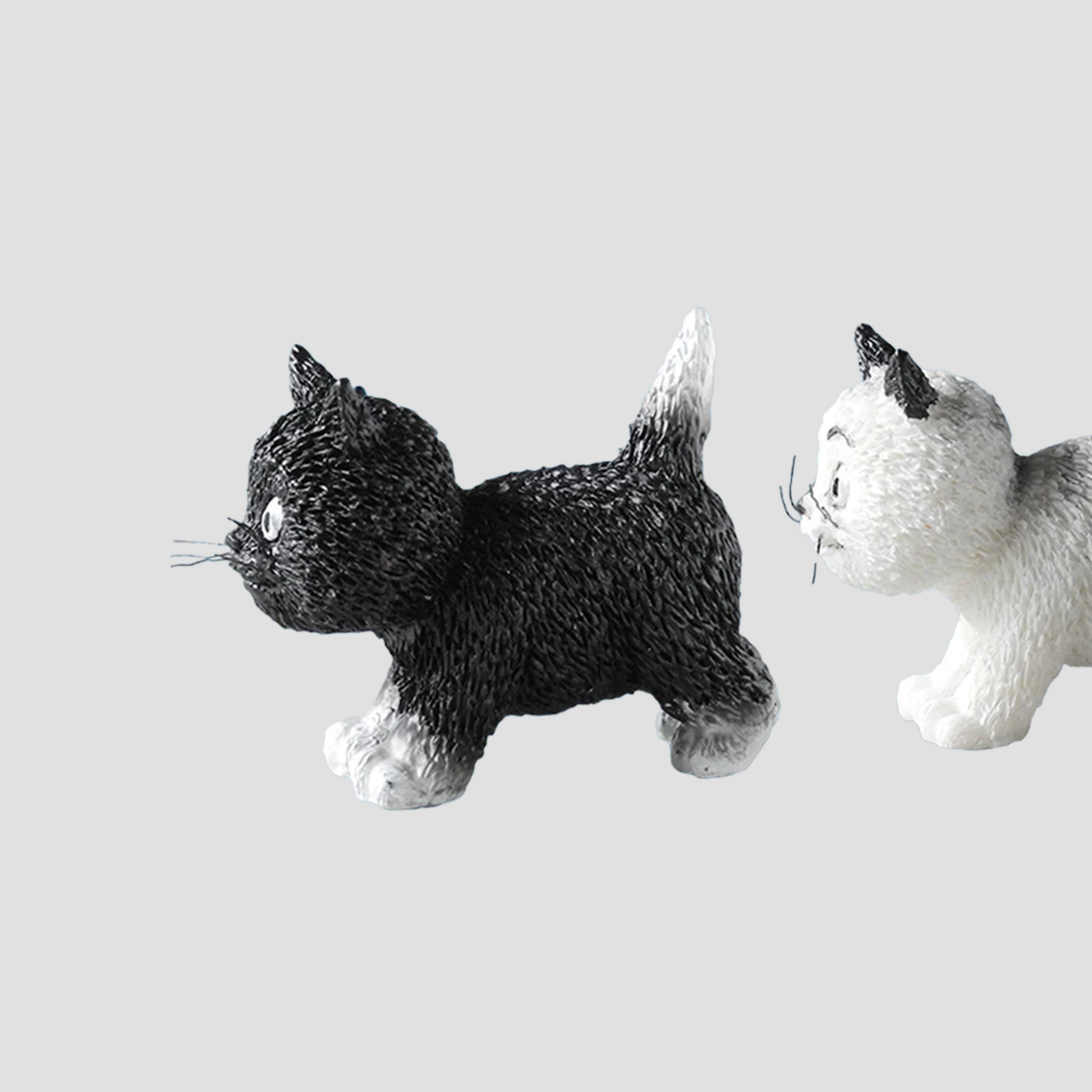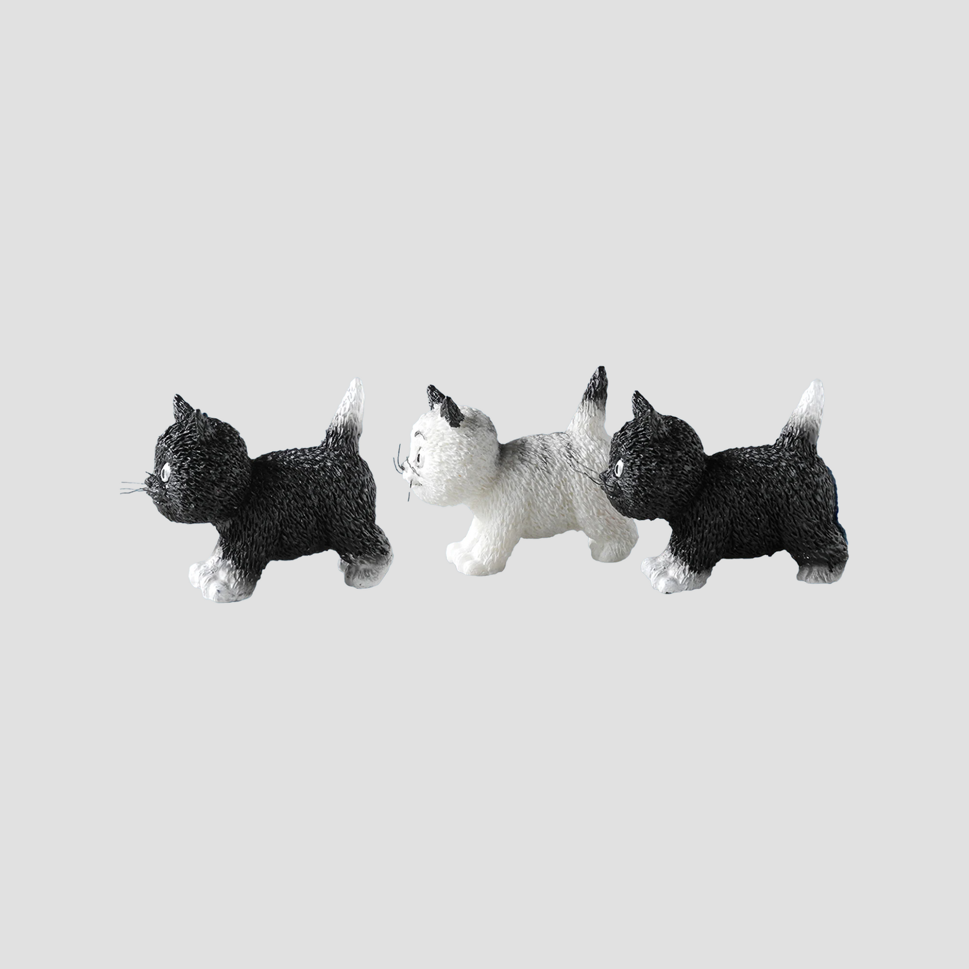 Un clin d’œil pour ces petits chats aventuriers. H. 4 cm. Chaque chaton est peint à la main. Vendus par 3 assortis