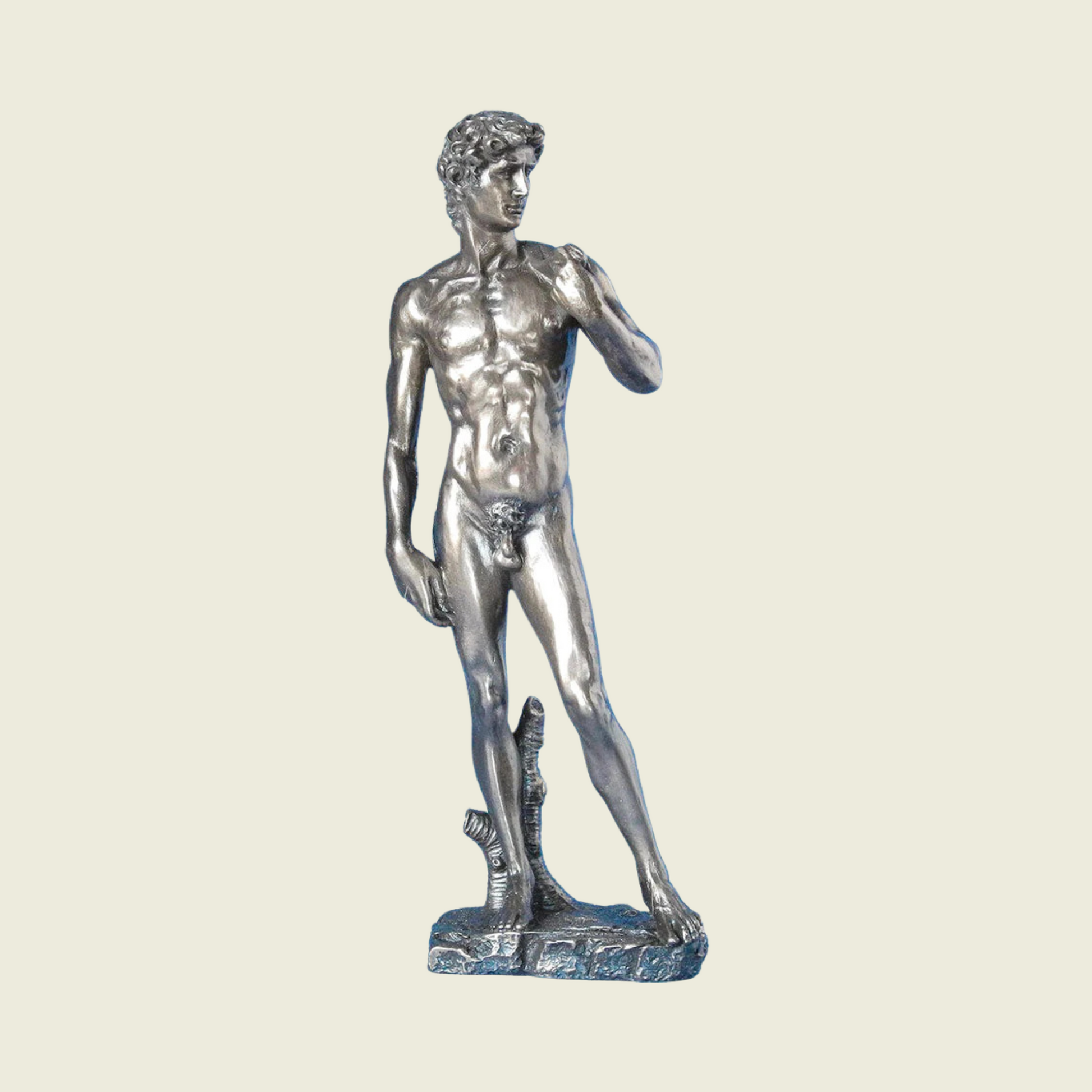 Considéré comme l’œuvre culminante du travail sculptural de Michel-Ange cette reproduction est Magnifique. On y retrouve la patte du Maître avec un corps extrêmement détaillé et une musculature en tension. Sculpté de 1501 à 1504. Résine patine bronze. H. 19 cm.