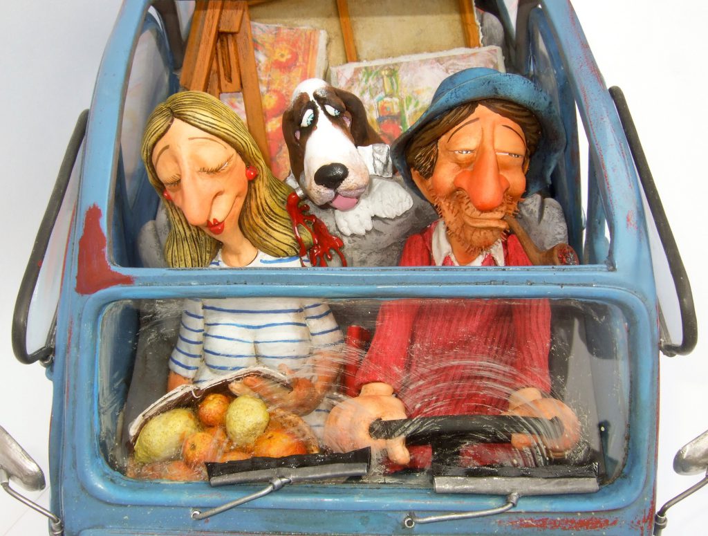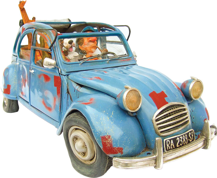 Les œuvres numérotées de l'artiste Argentin Guillermo Forchino qui excelle dans le « Comic Art » ont une renommée mondiale. Il vit à Paris et ses créations sont devenues disponibles pour les amateurs d'art dans de nombreux pays. La mise en scène très détaillée de cette sculpture, pleine d’humour et de finesse, nous fait plonger dans le monde du sourire et des souvenirs. Résine - Décor peint main. 37 x 16 cm H. 18 cm.