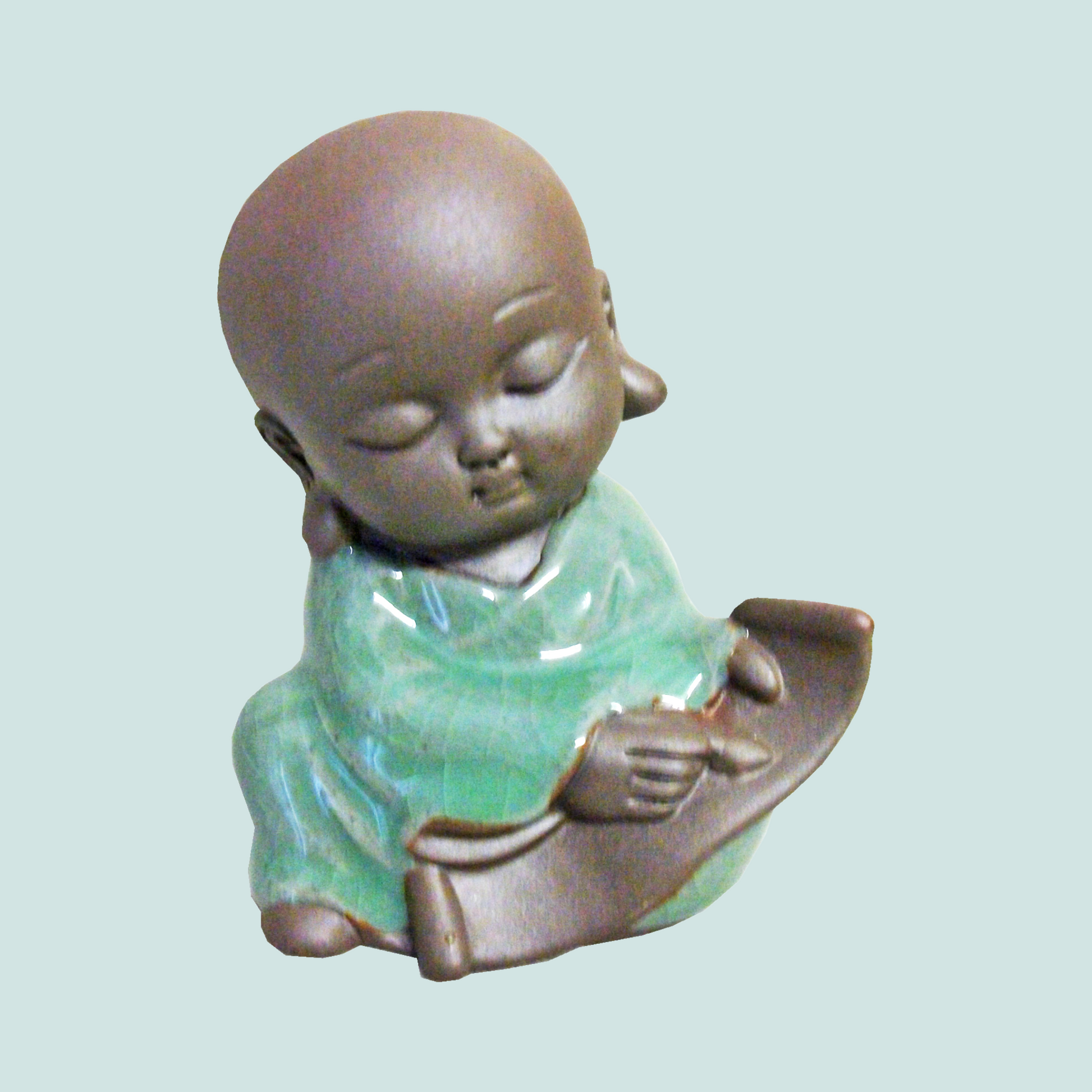 Ces moines vivaient principalement dans des scriptoria, des salles dédiées à la copie de textes religieux, philosophiques ou scientifiques. Leur travail était essentiel pour préserver la connaissance avant l’invention de l’imprimerie. Terre cuite peinte à la main. H. 9 cm
