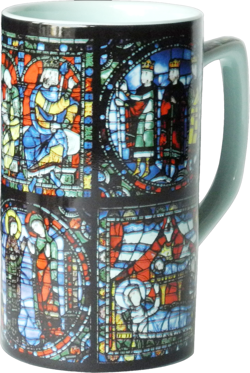 Cathédrale de Notre Dame de Chartres, Vitraux Médiévaux. Art Gothique XIIe siècle. Mug céramique H. 11, D. 6 cm. Livré dans carton cadeau