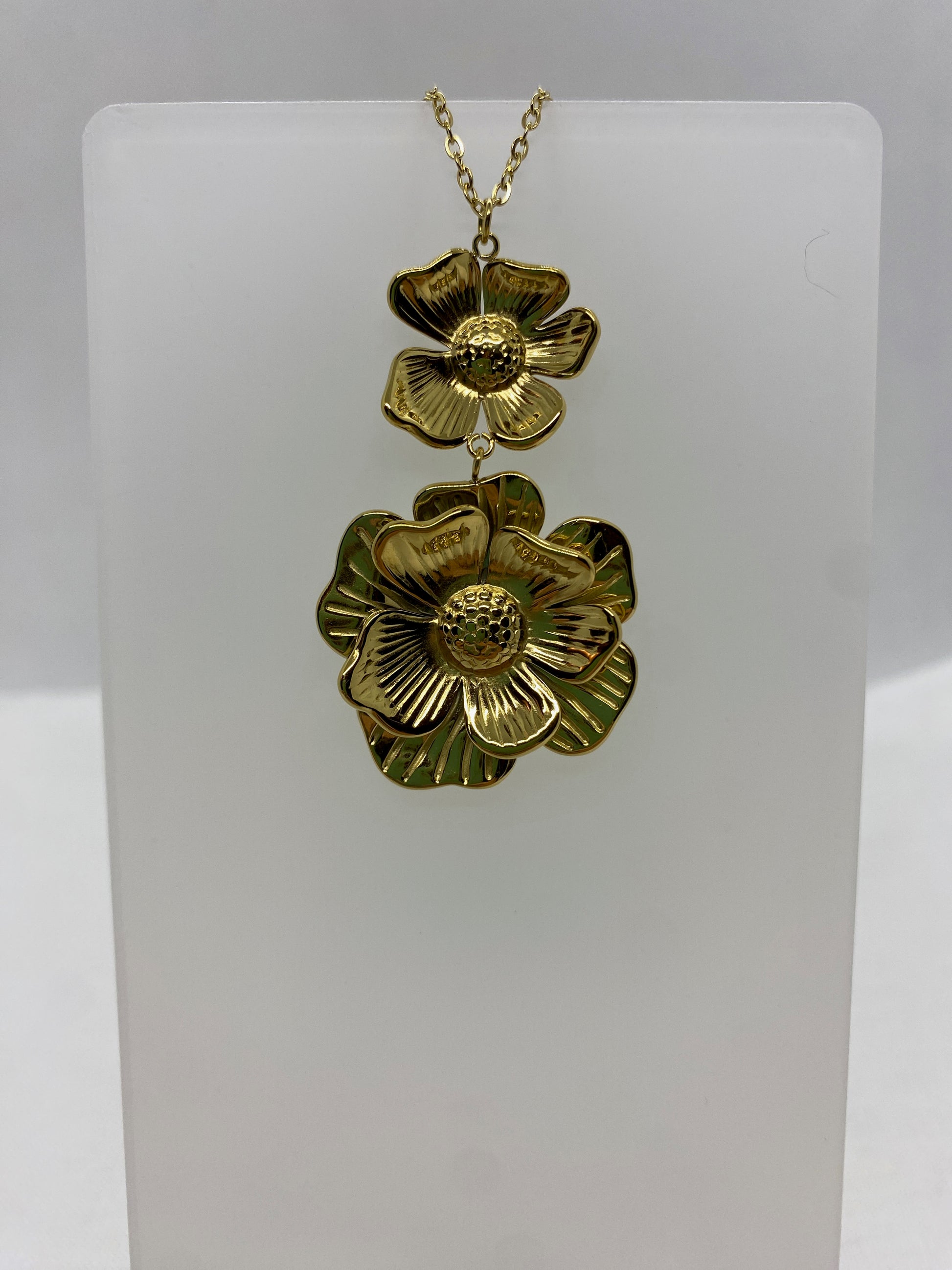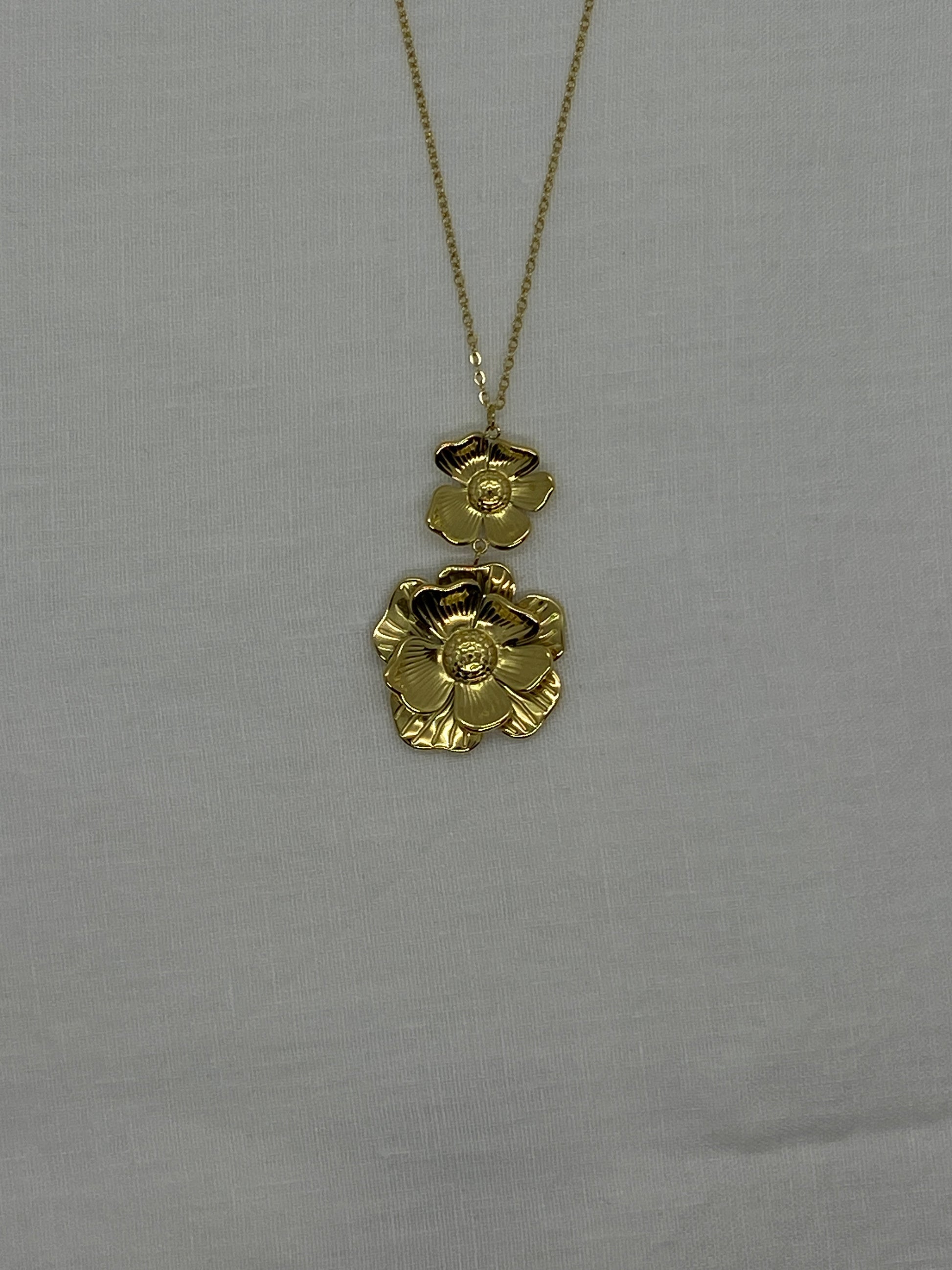 Finement travaillé avec un petit relief extérieur en peau de serpent, ce collier est typique de l'Art Nouveau avec ces deux anémones délicates et raffinées. Vous pourriez retrouver ses boucles d'oreilles et bracelet assortis pour compléter cette création unique qui vous fera voyager dans le temps et dans l'art. Acier doré ou fin. L. 40 cm. + 5 cm