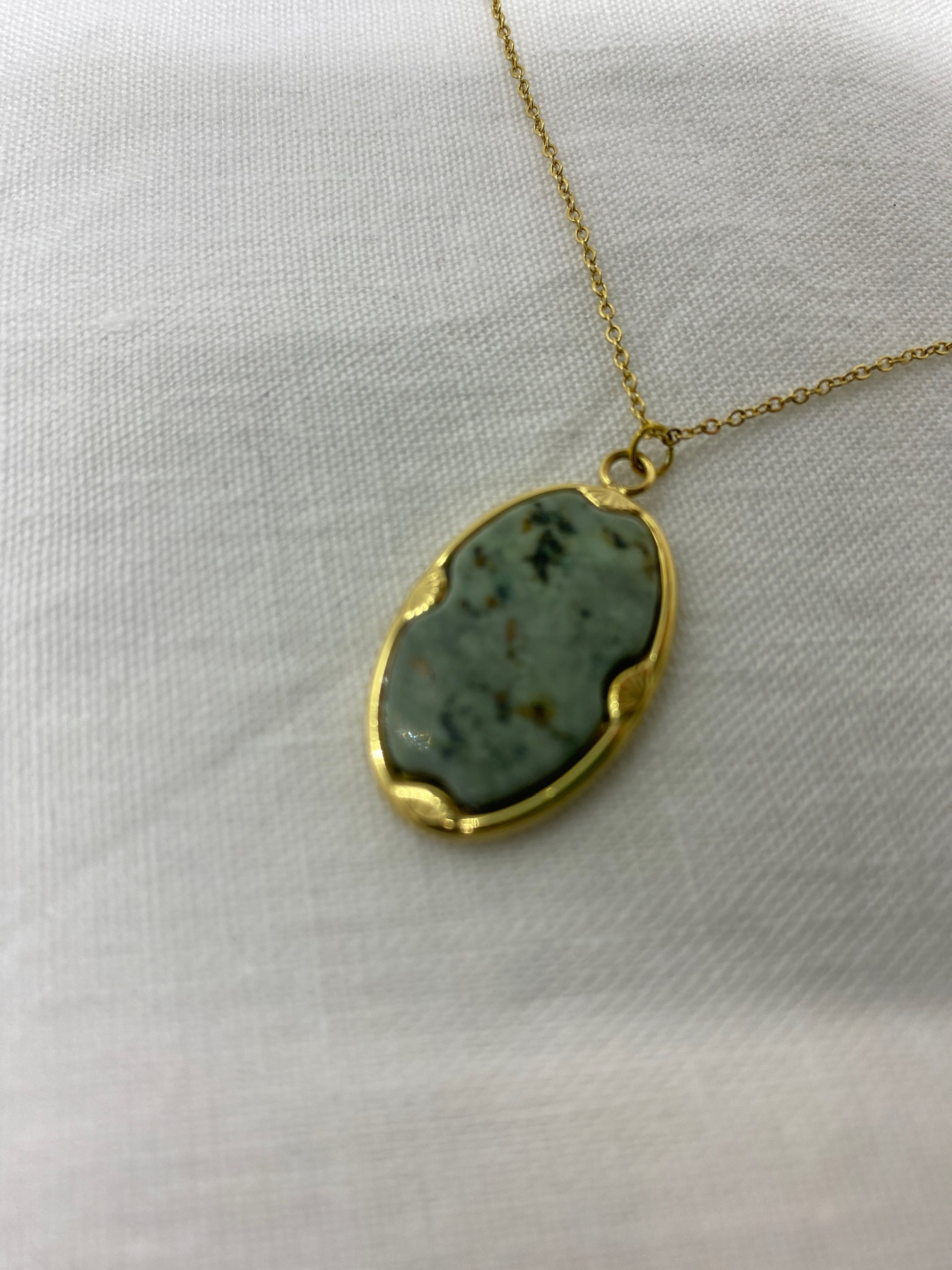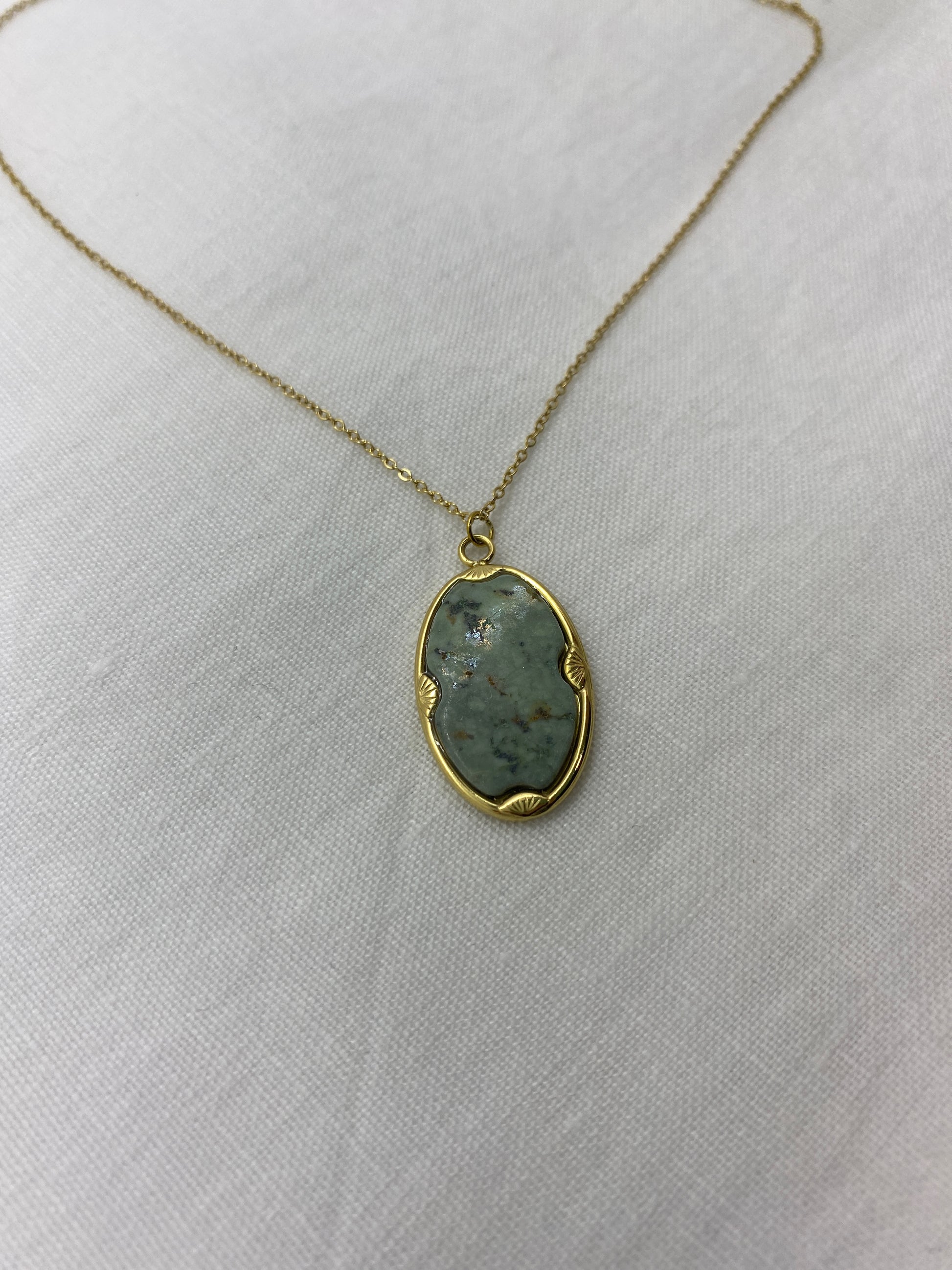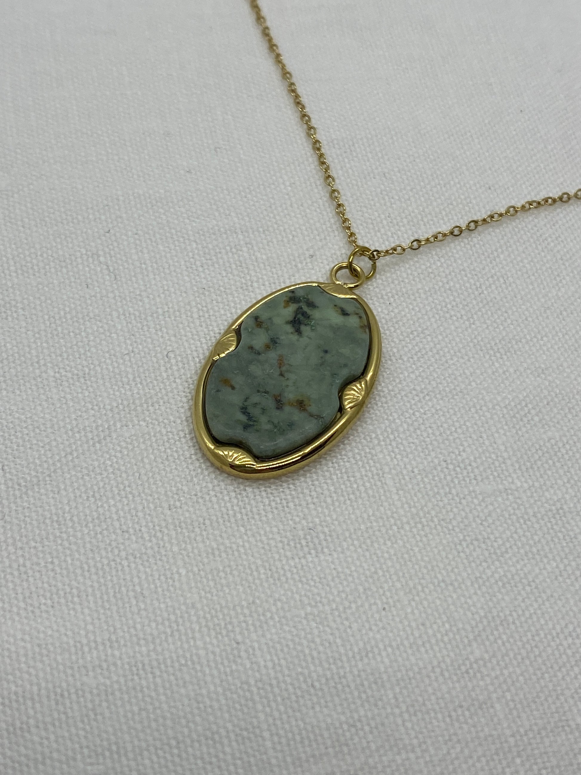 Simple et élégant, ce collier met en avant la beauté d’une pierre fine de labradorite très utilisée à l’époque romaine où les bijoux en or et en pierres précieuses étaient très appréciés. Cette pierre est réputée pour ses propriétés de protection et de régénération. Ce collier est réalisée en acier inoxydable doré or fin. Chaine de 40 cm. + 5 cm.
