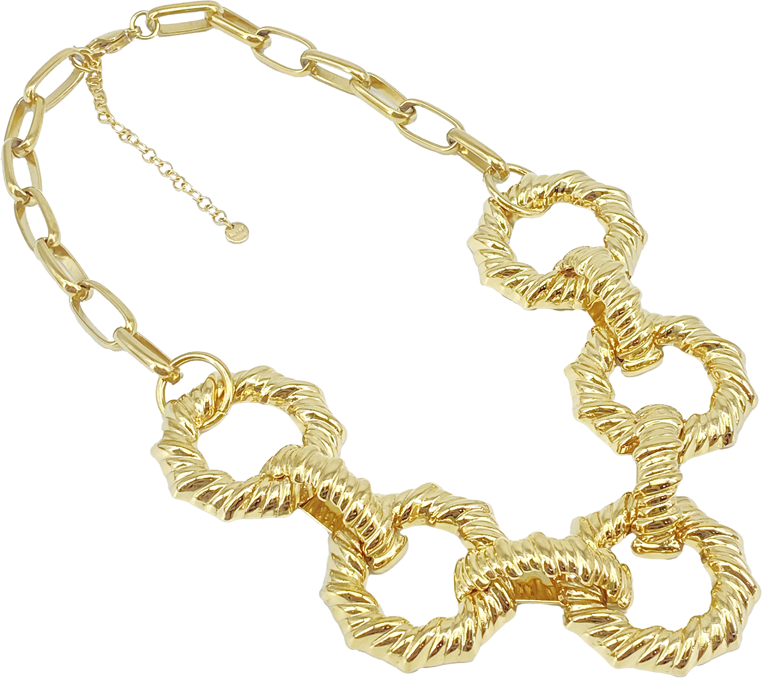 Magnifique parure en acier inoxydable doré or fin, inspirée des élégants bijoux romains qui ont traversé les âges. Cette collection, composée d'un collier, d'un bracelet et de boucles d'oreilles, réinvente le charme intemporel de l'Antiquité avec une touche de modernité. Chaque pièce de cette parure est finement travaillée, mettant en avant des anneaux délicats qui évoquent la sophistication et l'artisanat exceptionnel des artisans romains. Les courbes grâcieuses et les détails raffinés de chaque bijou capturent la lumière avec éclat, ajoutant une touche de glamour à toutes vos tenues, qu'elles soient décontractées ou plus habillées. Les boucles d'oreilles, légères et élégantes, apportent une touche finale à votre look, vous permettant de briller en toute occasion.