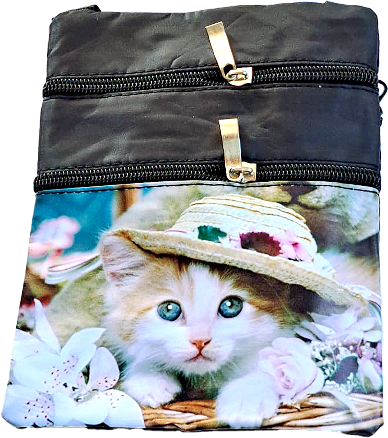 Pratique et ravissante avec ces petits chats qui sont craquants, cette pochette (18,5 x 14 cm) est magnifique avec ses poches zippées (deux sur le devant et une grande à l’arrière). Pochettes avec petits chats assortis tous aussi craquants. réf. 52073 | 9,90 €