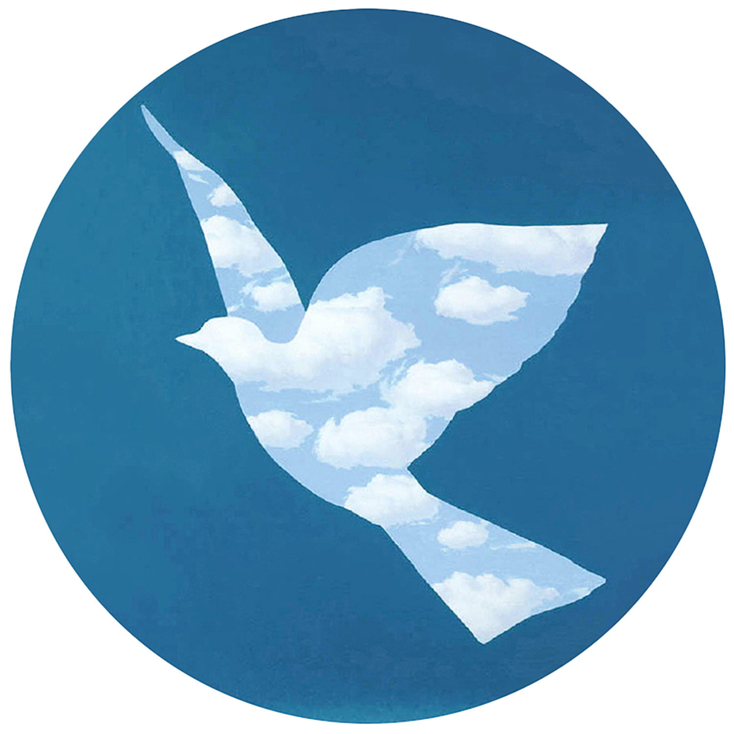 René Magritte (1898-1967) a inventé "L’oiseau de ciel", comme sont appelés ses oiseaux représentés découpés dans les nuages, dans un paysage de rêve ou en plein vol sur la mer. D. 8 cm, H. 3,5 cm – Verre.