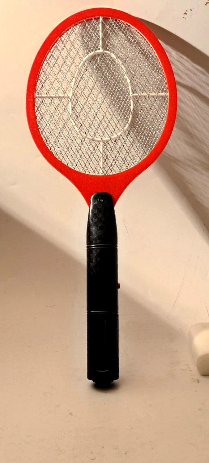 | Contre les moustiques et tous les insectes que vous voudrez, une raquette perfectionnée grâce à son système vibratoire. 2 piles LR6, 1,5 v, non fournies. Pensez à retirer les piles pendant l'hiver. 18 x 3 x 47 cm |