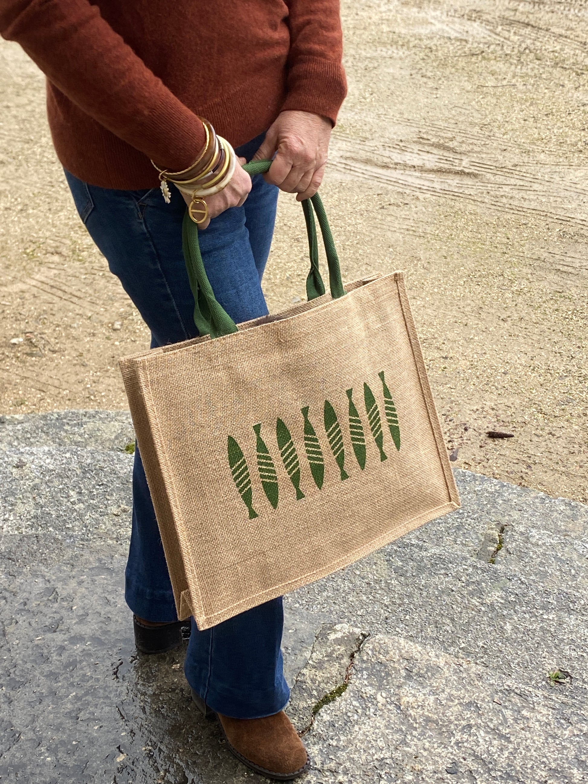 Ce cabas est solide et chic à la fois avec sa grosse toile délicatement ourlée et ses motifs poissons très sobres et dont la couleur est en harmonie avec ses anses. Le poisson (ICHTHUS en Grec) est l'un des symboles majeurs qu'utilisaient les premiers chrétiens en signe de reconnaissance. Les premiers chrétiens persécutés par les autorités romaines l'utilisaient comme code secret pour se reconnaître entre eux. Le signe du poisson (tourné vers la droite ou la gauche) fleurissait notamment en graffitis sur les murs de Rome avant Pâques, en guise de discrètes flèches pour indiquer aux chrétiens de passage le chemin des cryptes où aurait lieu l'office pascal. 42 x 32 x 10 cm. Poche intérieure zippée, et fermeture du haut du sac par zip également.