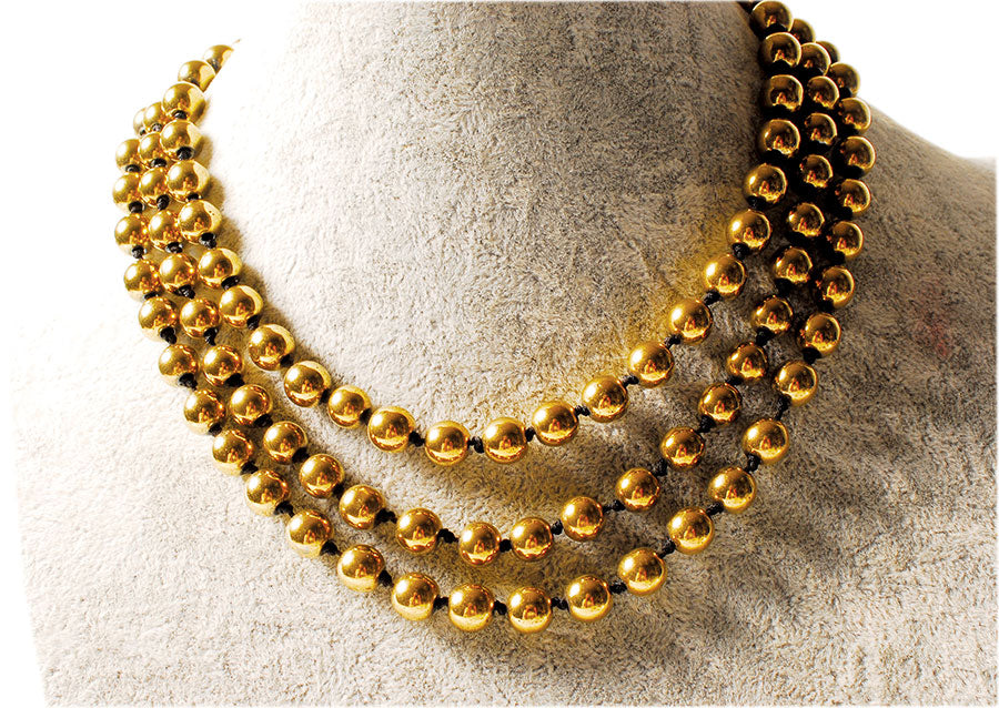 Classique, sa magnifique couleur mettra en valeur vos tenues. Parfait pour les fêtes. Sa grande longueur lui permet de s’enrouler en collier 3 rangs du plus bel effet. Fermoir sécurité – L. 120 cm - Perles métal doré D. 7,5 cm.