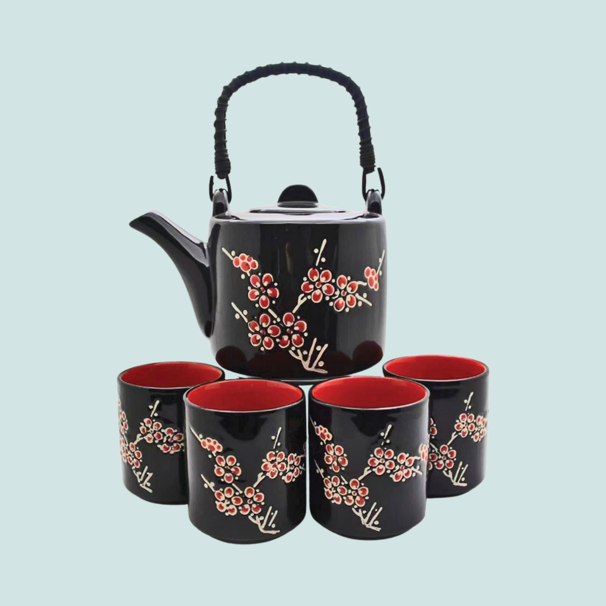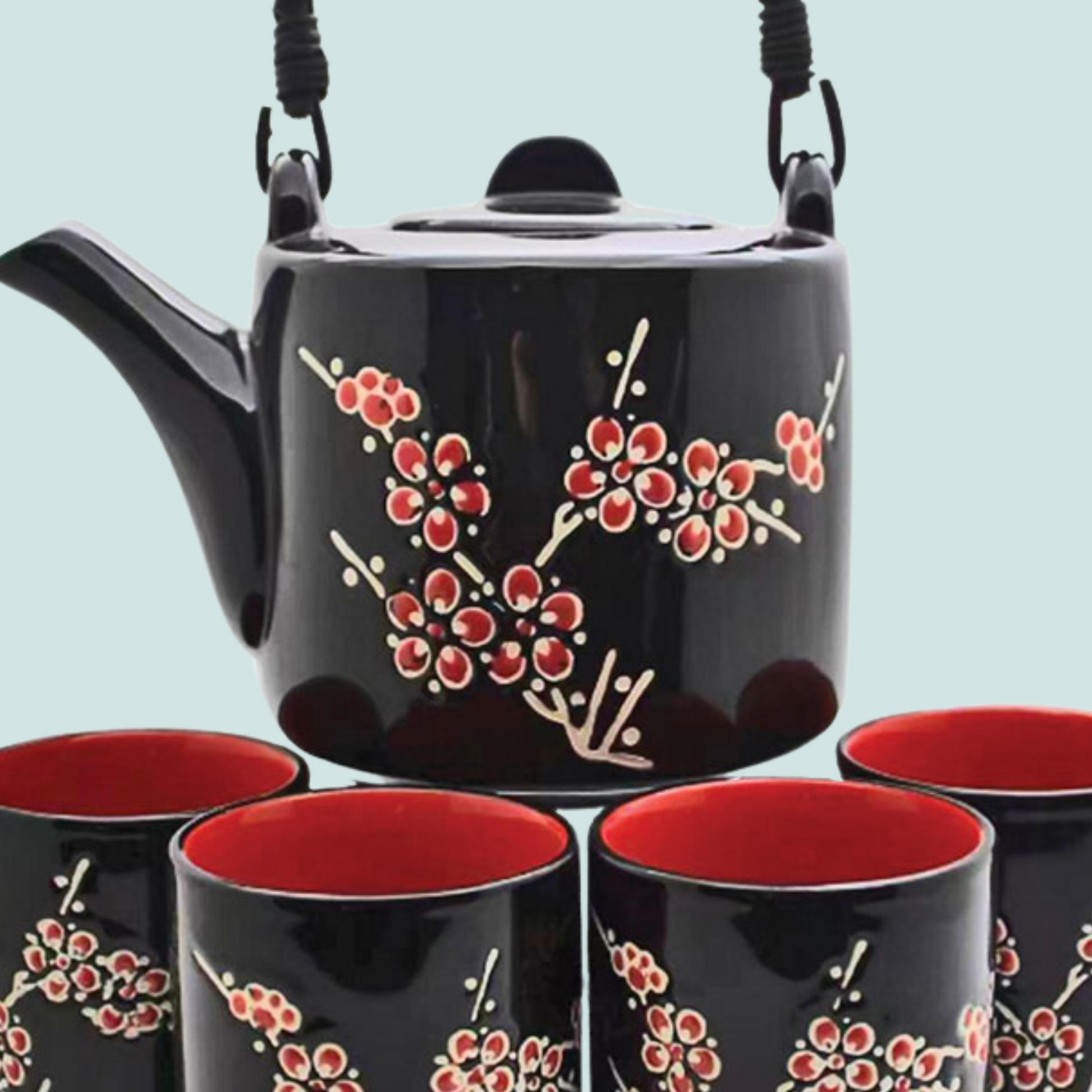 | Pour ceux qui aiment le thé et la culture japonaise. Son ravissant décor peint à la main symbolise les cerisiers en fleurs symboles de beauté et de renouveau au Japon. Il se compose d’une théière avec un filtre intégré et de quatre gobelets assortis. Idéal pour partager un moment de convivialité avec une touche d’élégance et d’originalité. Céramique. |