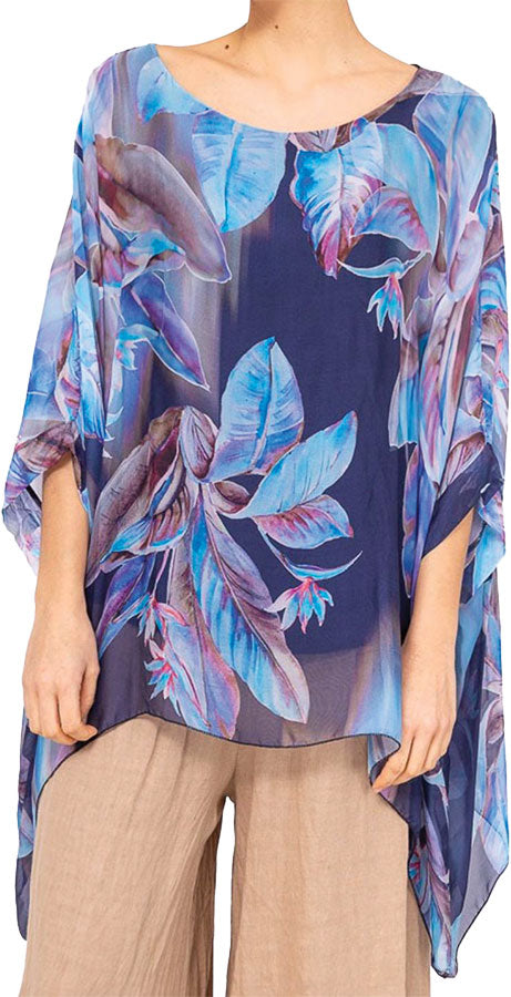 Très élégante elle allie confort et style. Sa matière fluide et légère vous enveloppe avec douceur, tandis que les transparences ajoutent une touche de mystère. Que vous la portiez avec un pantalon ou une jupe, elle vous garantit un look raffiné et féminin. Un choix incontournable pour celles qui apprécient l’élégance et le confort. Laissez-vous séduire par la beauté des fleurs et la légèreté de notre tunique (doublée), et faites sensation où que vous alliez ! Soie 30 % - Viscose 70 % - Longueur dos 69 cm. Fabriqué en Italie