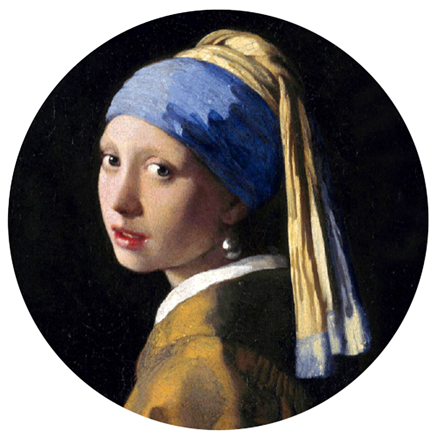 La Jeune Fille à la perle est une peinture à l'huile sur toile réalisée par le peintre néerlandais Johannes Vermeer vers 1665. Presse-papier D. 8 cm, H. 3,5 cm – Verre. Livré dans une boîte cadeau